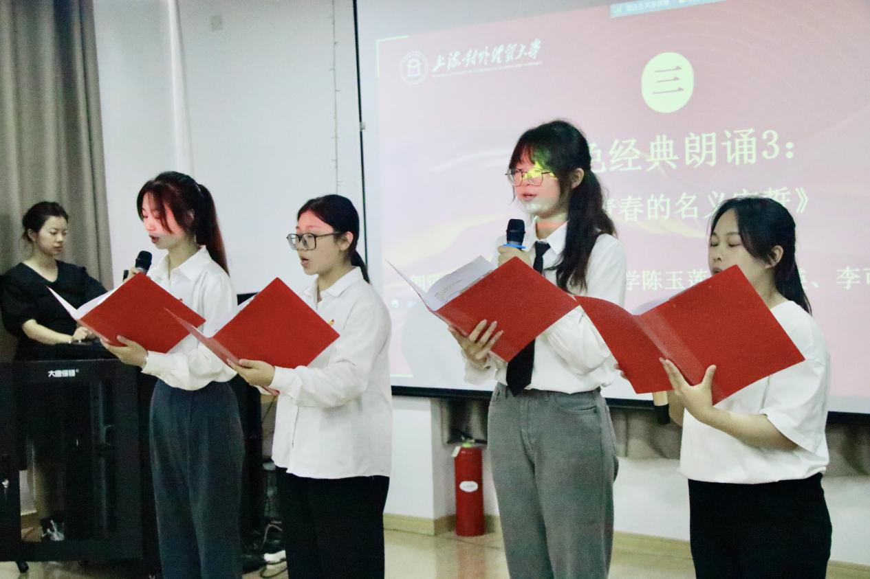 活动现场,松江区悦都居民区党员代表陆龙芳和入党积极分子陆娇,仲巴县琼果乡小学次曲仁曲,以及上经贸大学生代表陈玉莲、黄皓瑛、李可珂、黄梓静分别作《党在我心中》《夏明翰的家书》《以青春的名义宣誓》等红色经典朗诵。