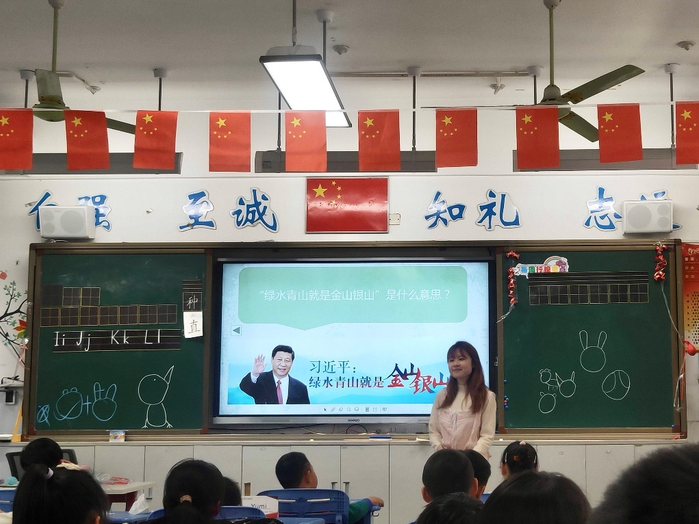 结合时事热点宣讲党的二十大。在上海外国语大学松江外国语学校的课堂上,陈靖桐抓住“世界地球日”这一契机,将“绿色发展”“美丽中国”“人与自然和谐共生”等党的二十大精神中的丰富内涵和伟大成果以视频图片、讨论互动等广大中小学生们喜闻乐见的方式一一呈现,既帮助学生了解我国在环境保护方面所取得的显著成就,增强对我国生态文明建设的自信和自豪感,又使他们深刻认识到环境保护对人类未来发展的重要性,激发他们对环保事业的热爱与责任。