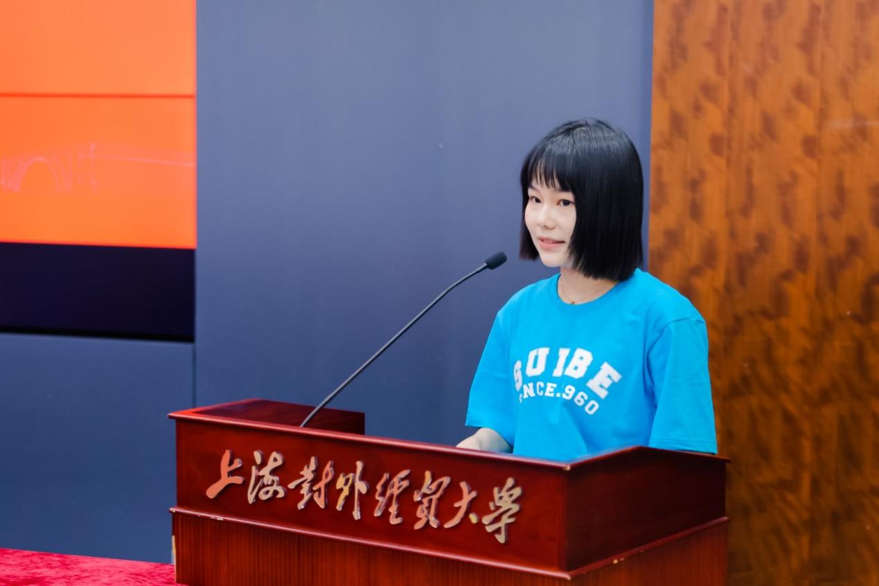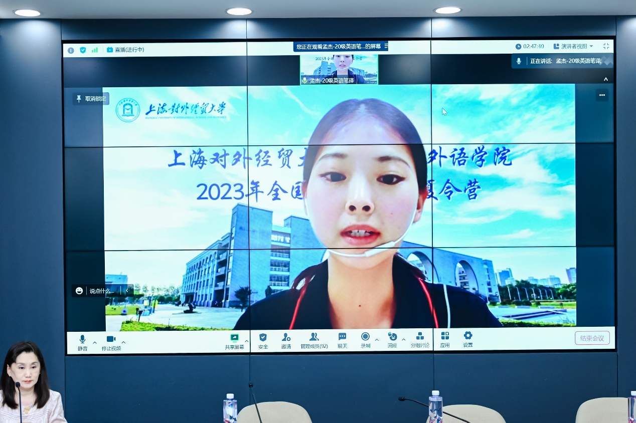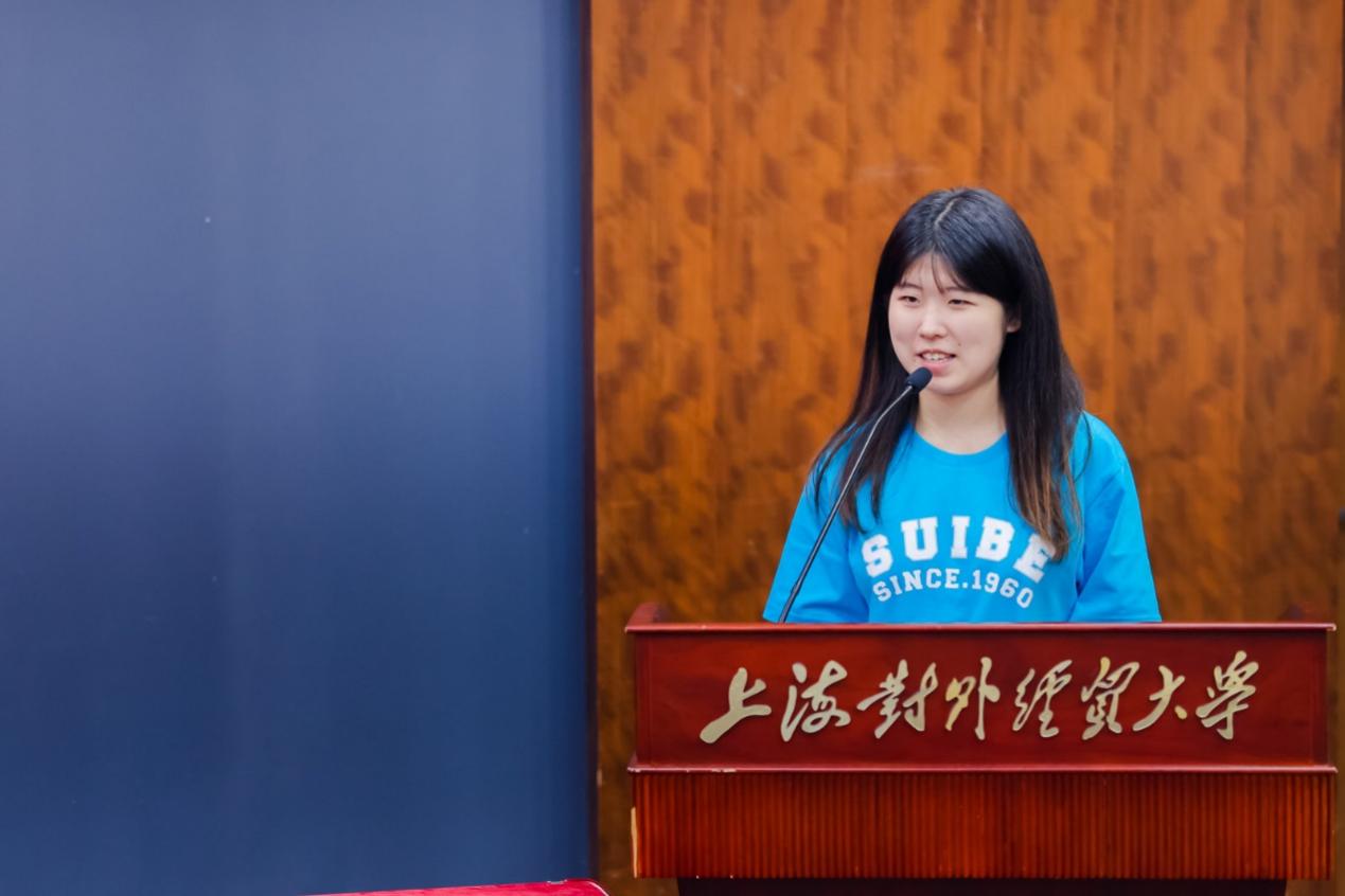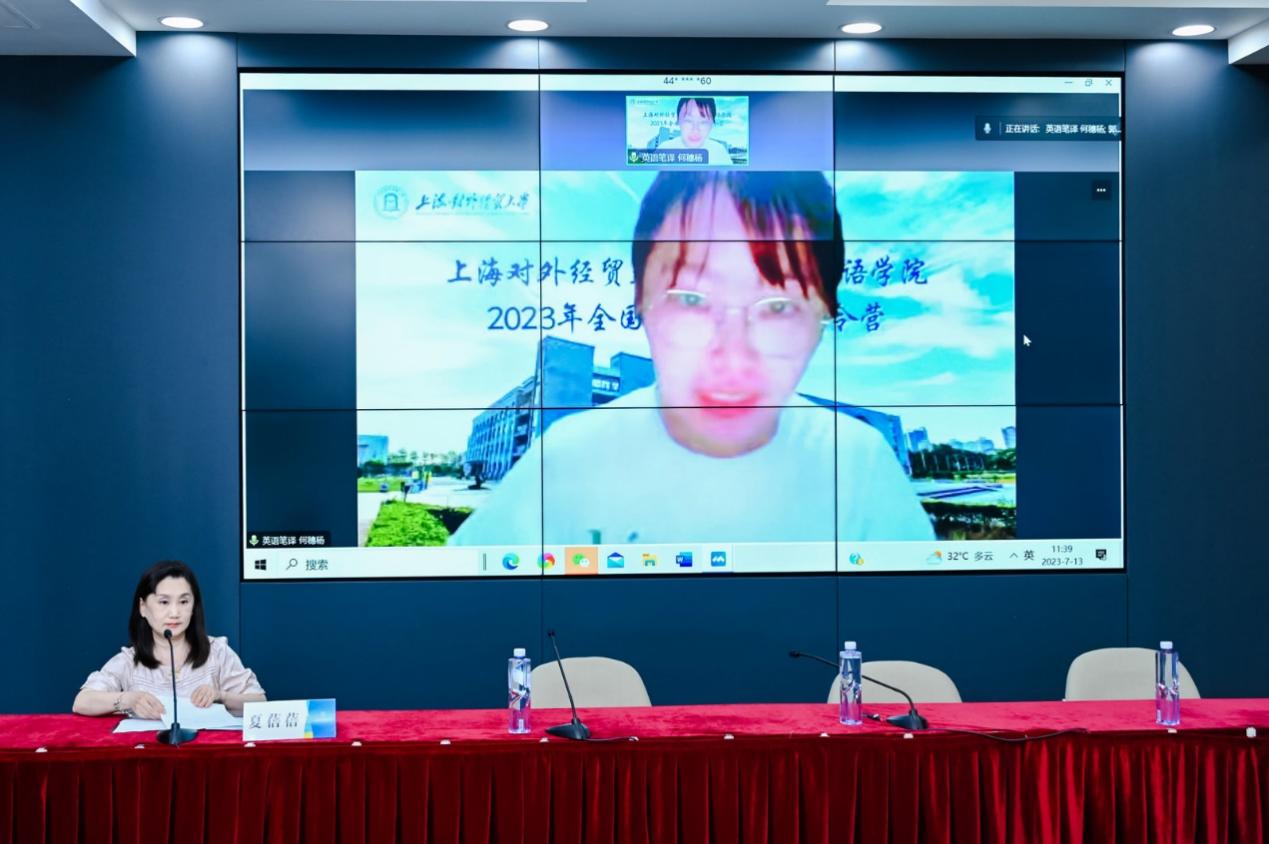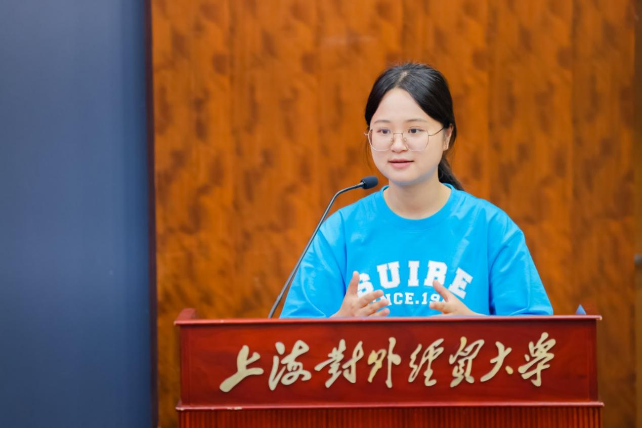 闭营式上,温建平宣读了“优秀营员”名单。丁姝雅、董向荣、陆昕辰、欧阳佳、孙小林等5位同学作为“优秀营员”代表发言。同学们分享了自己参加本次夏令营的收获,表示通过此次活动了解了上经贸大国际商务外语学院优秀的师资团队和研究生同学,结识了来自全国各地的优秀大学生,收获了友谊,开阔了学术视野。
