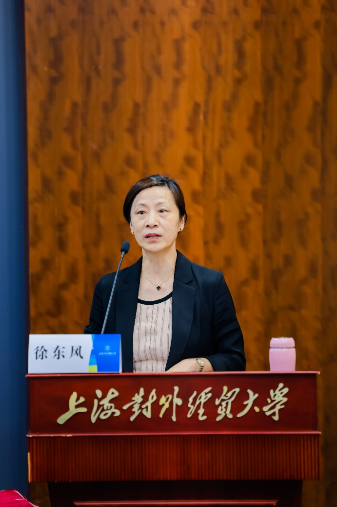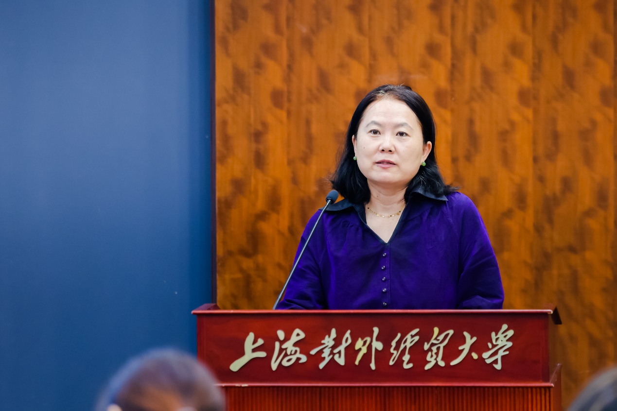 国际商务外语学院院长温建平介绍了学院的发展历程、外语学科的建设现状以及人才培养的成效与特色。她表示,学院外语学科的发展势头良好,外国语言文学一级学科在第三、四、五轮学科评估中均获得了优良的成绩;在全国专业学位评估中,翻译专业硕士学位点表现同样突出。学校一直保持着商务英语教学、商务翻译等的传统特色和优势,成为服务国家和上海对外开放事业的重要力量。她还着重就学院培养研究生科研创新能力、提升研究生培养质量的一系列具体举措作了说明。