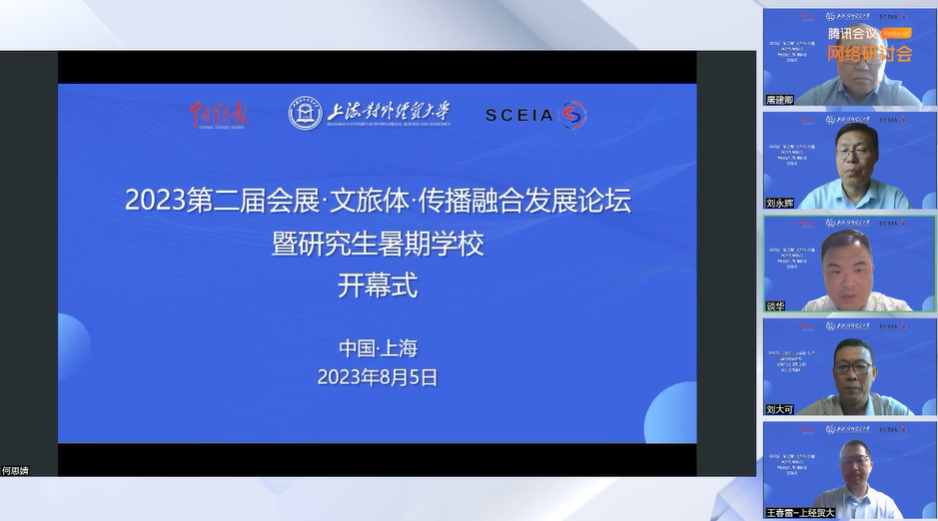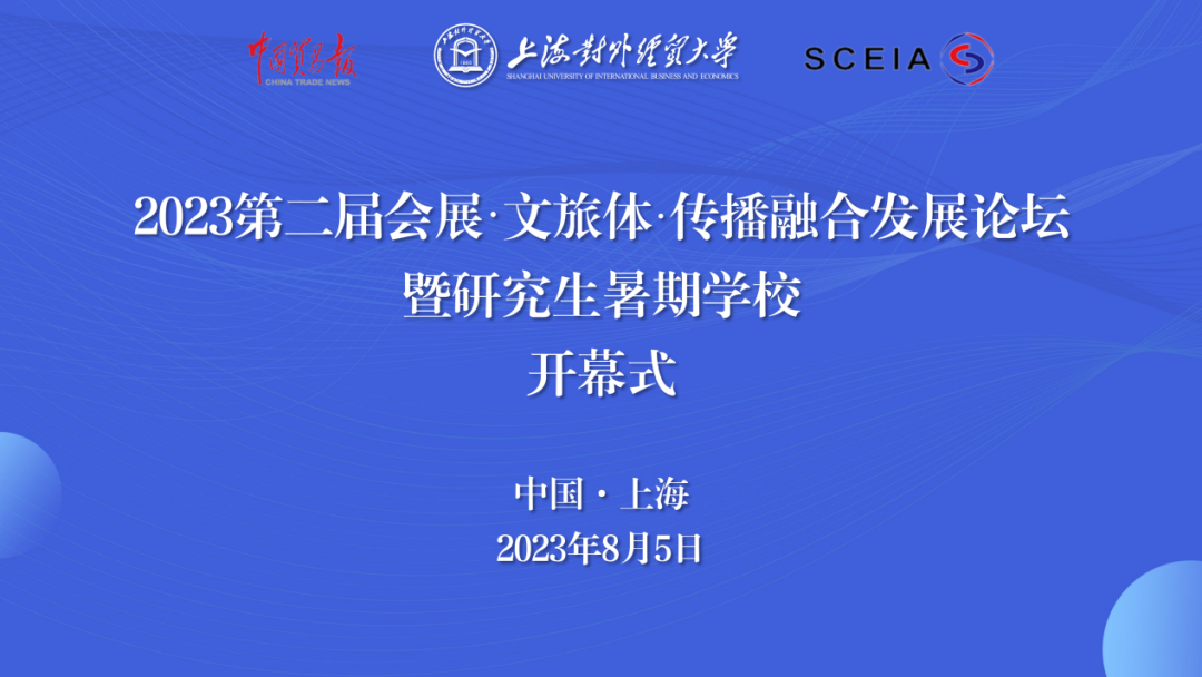 8月5日,由上海对外经贸大学、《中国贸易报》社和上海市会展行业协会主办,上海对外经贸大学会展与传播学院、上海对外经贸大学研究生院和长三角会展研究院承办的2023第二届会展·文旅体·传播融合发展论坛暨研究生暑期学校开幕式和论坛主旨演讲在线举行。