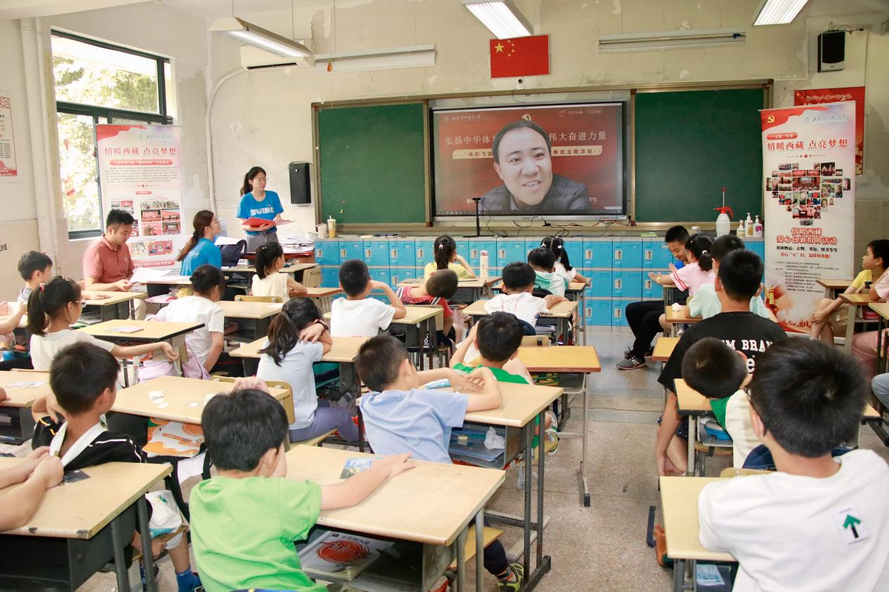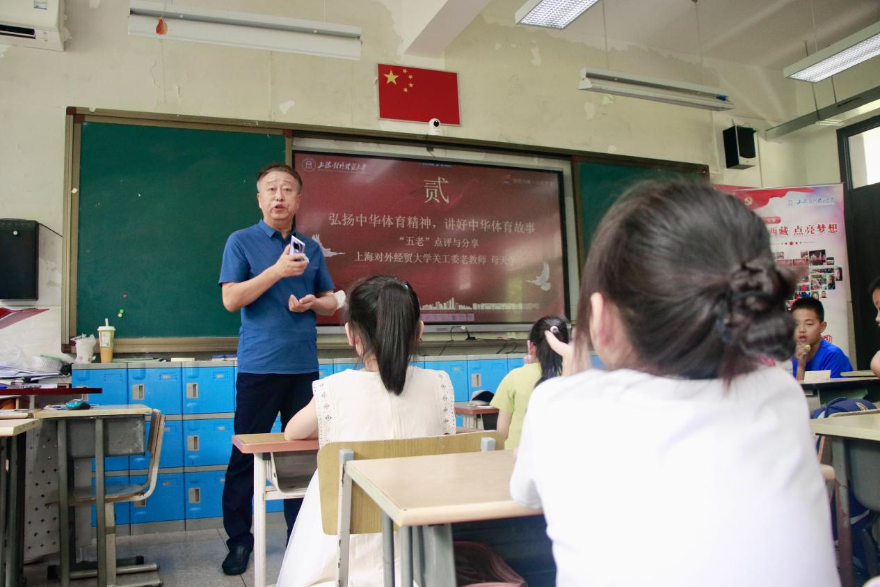 8月8日,正值“第十五个全民健身日”,一场来自上海对外经贸大学的“绳彩飞扬,跃动青春”全民健身日主题活动暨“情暖西藏·点亮梦想”红色班会活动,通过线上线下联动的方式,吸引了西藏定日县第二初级中学、松江区广富林街道爱心暑托班、松江区九亭镇爱心暑托班等沪藏两地70余位师生的参与。活动特别邀请上海对外经贸大学关工委老教师母天学、上海跃动文化传播有限公司执行董事李胜席共同参与,师生一同在红色班会活动中感悟中华体育精神,凝聚奋进力量。