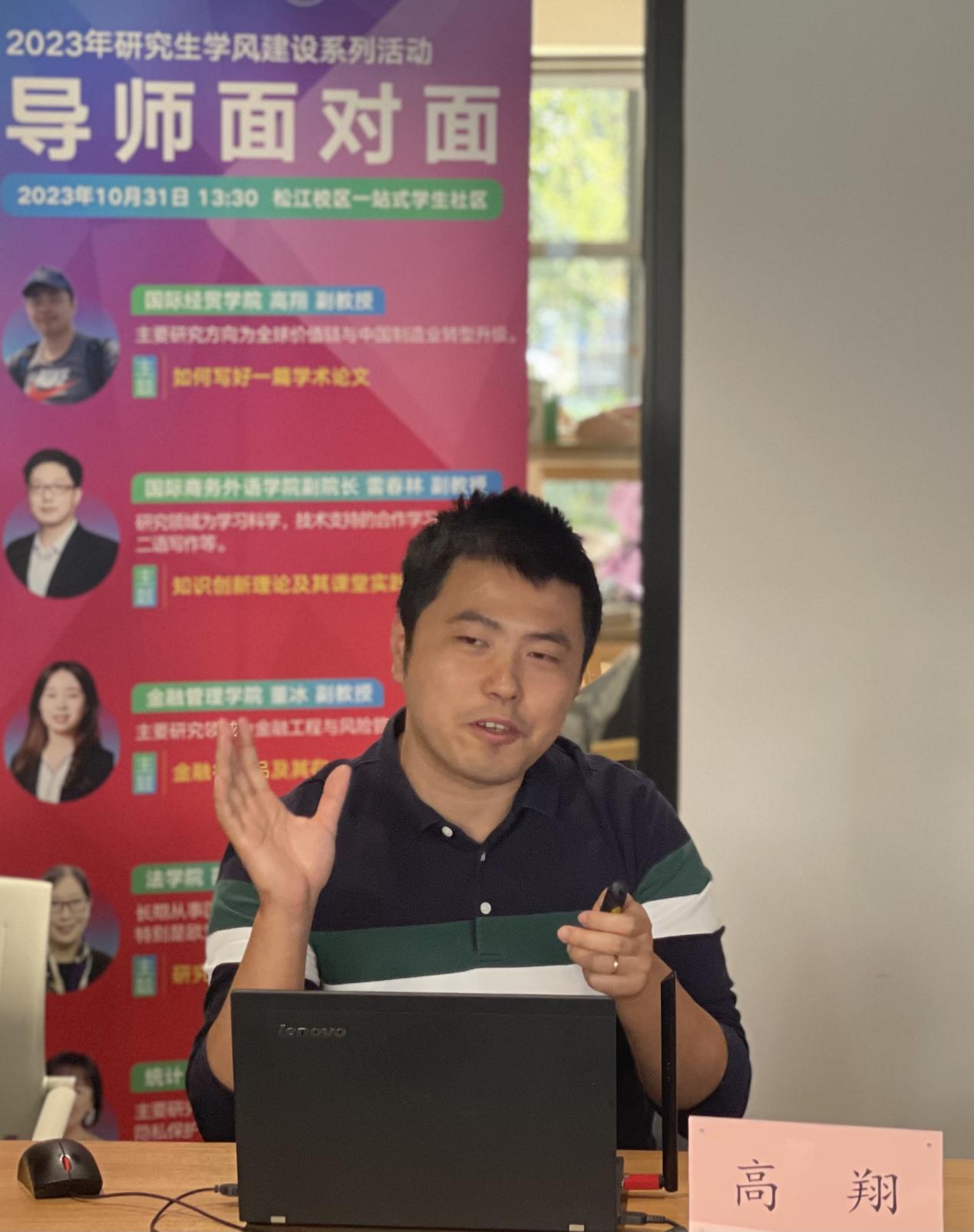 国际经贸学院高翔副教授以“写好一篇学术论文”为题,结合实际案例,从论文的选题、文献的梳理和使用、研究论证的逻辑、论文的结尾、遵守学术规范及信守学术道德等方面要注意的要求和规范,为研究生作了系统指导,为研究生修炼内功指明方向。