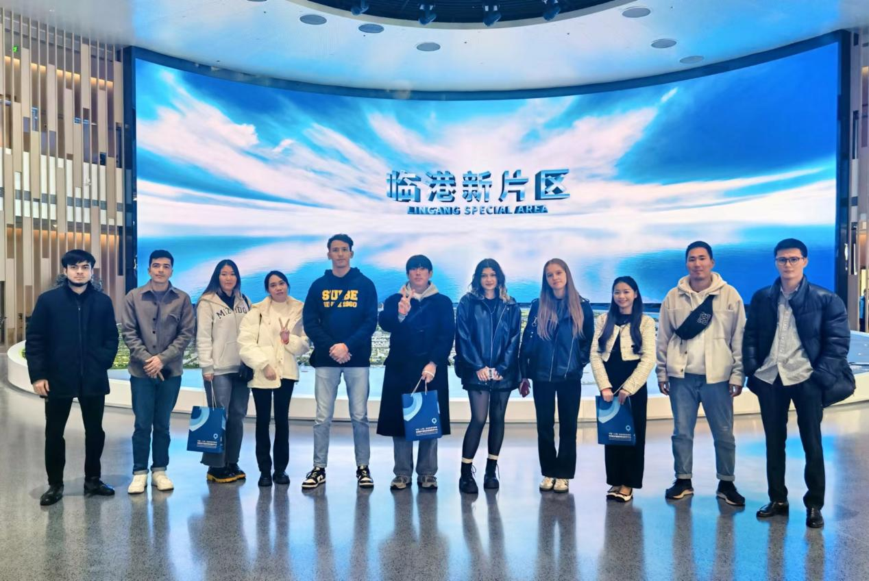 与会师生在滴水云厅听取了相关部门负责人针对出入境政策、外籍人才就业政策的宣介,并先后走访规划展示中心、滴水湖AI创新港、朵云书院、上海新松机器人展厅等一系列临港地标性打卡点,在参观中走进临港、体验临港,了解临港发展的速度、高度和广度,感悟未来之城的独特魅力。