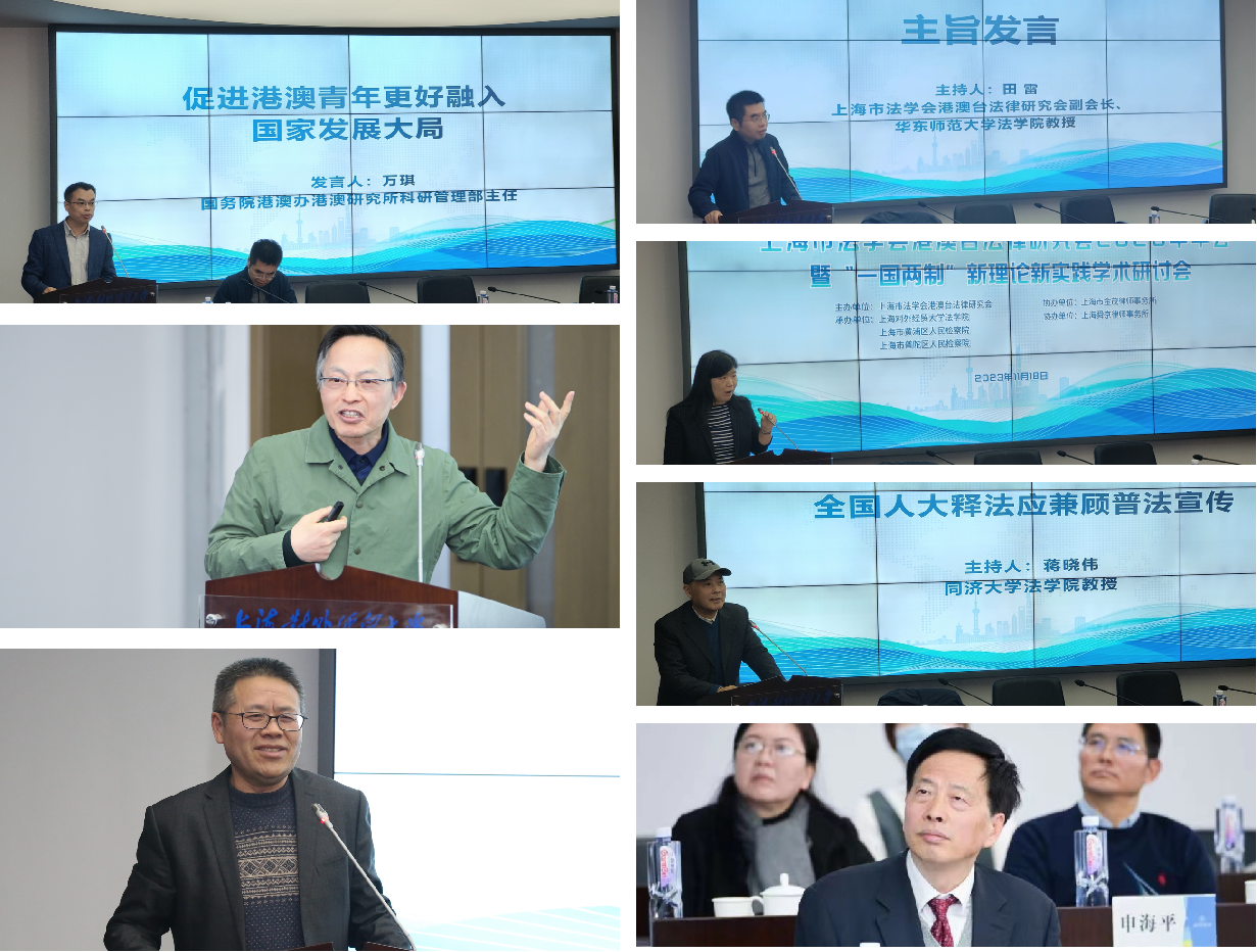 11月18日,上海市法学会港澳台法律研究会2023年年会暨“一国两制”新理论新实践学术研讨会在上海对外经贸大学古北校区顺利举行。本次会议由上海市法学会港澳台法律研究会主办,上海对外经贸大学法学院、上海市黄浦区人民检察院和上海市普陀区人民检察院联合承办,上海市金茂律师事务所及上海舜京律师事务所共同协办。来自中共中央港澳工作办公室港澳研究所科研管理部和上海市法学会的代表,以及复旦大学、同济大学、华东师范大学、上海大学、中国浦东干部学院、华东政法大学、上海对外经贸大学、上海财经大学、上海政法学院、上海海关学院、上海立信会计金融学院等院校的专家学者欢聚一堂,围绕相关主题和三个议题展开研讨。