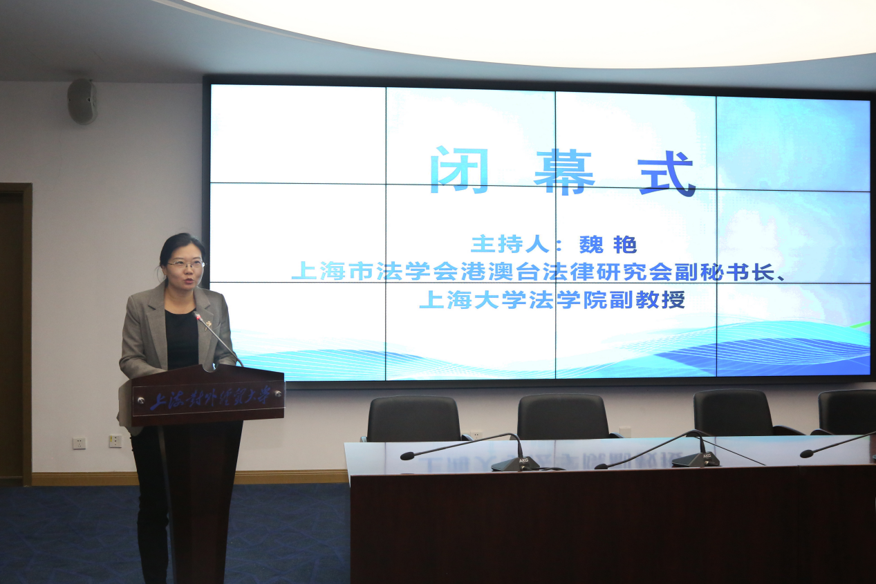 上海市法学会港澳台法律研究会副秘书长、上海大学副教授魏艳主持了闭幕式。上海市法学会港澳台法律研究会副会长蒋晓伟教授在闭幕致辞中总结了本次学术研讨会的四个特点:一是全面的系统性,二是前沿的创新性,三是理论与实践的结合性,四是研究梯队的合理性。本次会议在全体与会人员的热烈掌声中圆满结束。