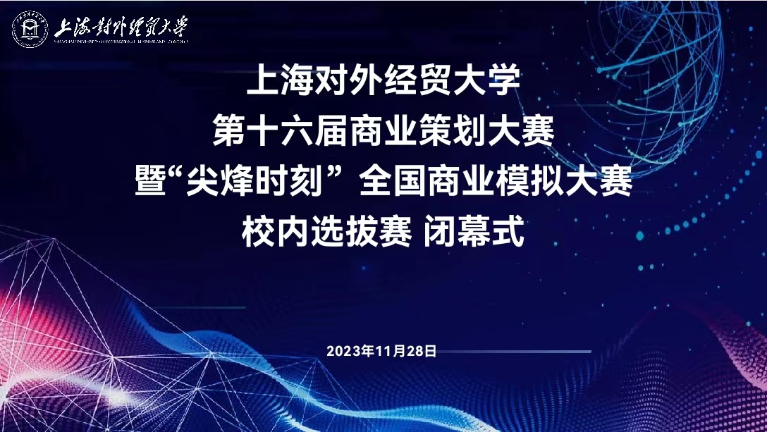 上海对外经贸大学第十六届商业策划大赛暨2023年“尖烽时刻”全国商业模拟大赛校内选拔至此落下帷幕。作为上海对外经贸大学学术类品牌项目之一,大赛将持续为培养学生学术与应用的能力发挥作用,为培养新商科英才贡献力量。