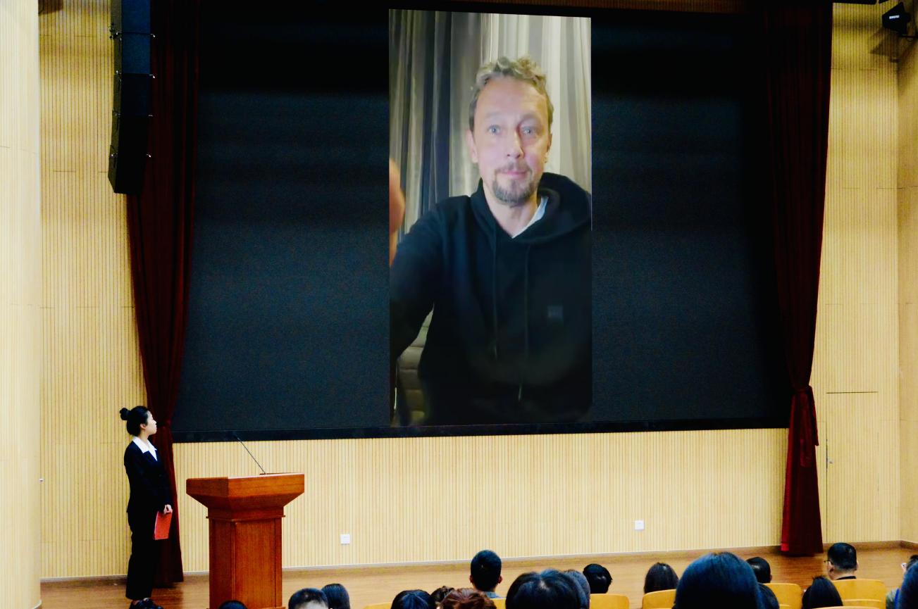 闭幕式现场,本届商业策划大赛平台合作方,芬兰CESIM公司CEO——Veijo 先生为大赛致贺词。Veijo表示其开设模拟决策平台,不仅是为了助力学校的人才发展建设,更重要的是让选手们能够了解真实的企业营销环境,培养选手们的商业水平和综合实力,从而具备解决企业问题的能力。