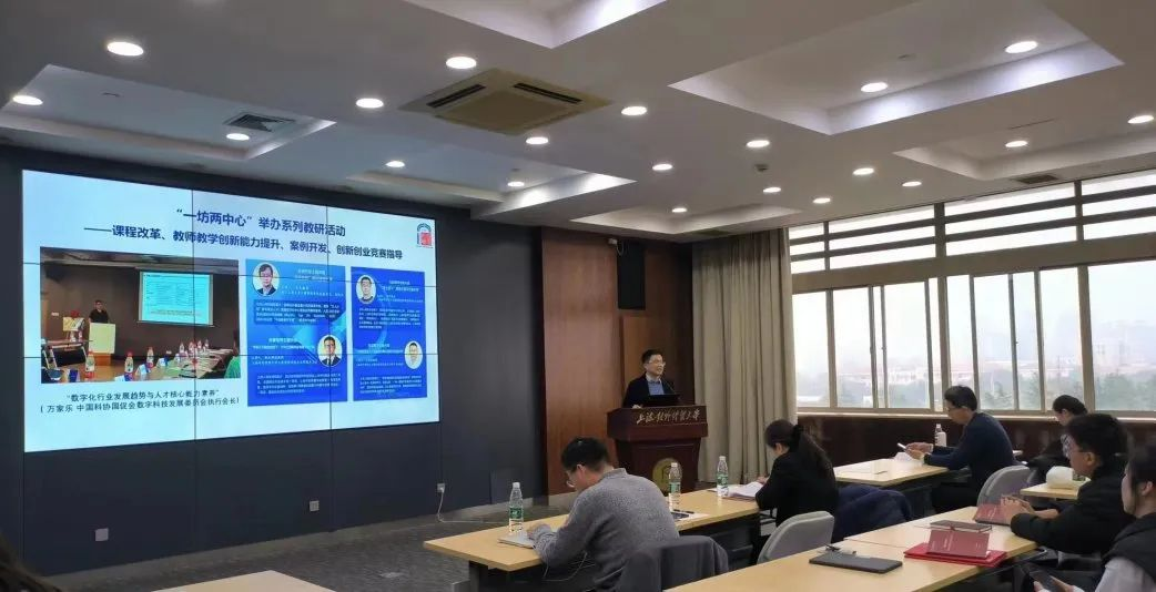 年度工作总结环节,各位系主任和三个中心的主任依次登台,回顾了2023年教学科研、人才培养和团队建设,以及MIB教育中心、创新创业教学教育中心和案例教学教育中心年度工作亮点等方面的情况,并对未来的努力方向进行系统谋划。