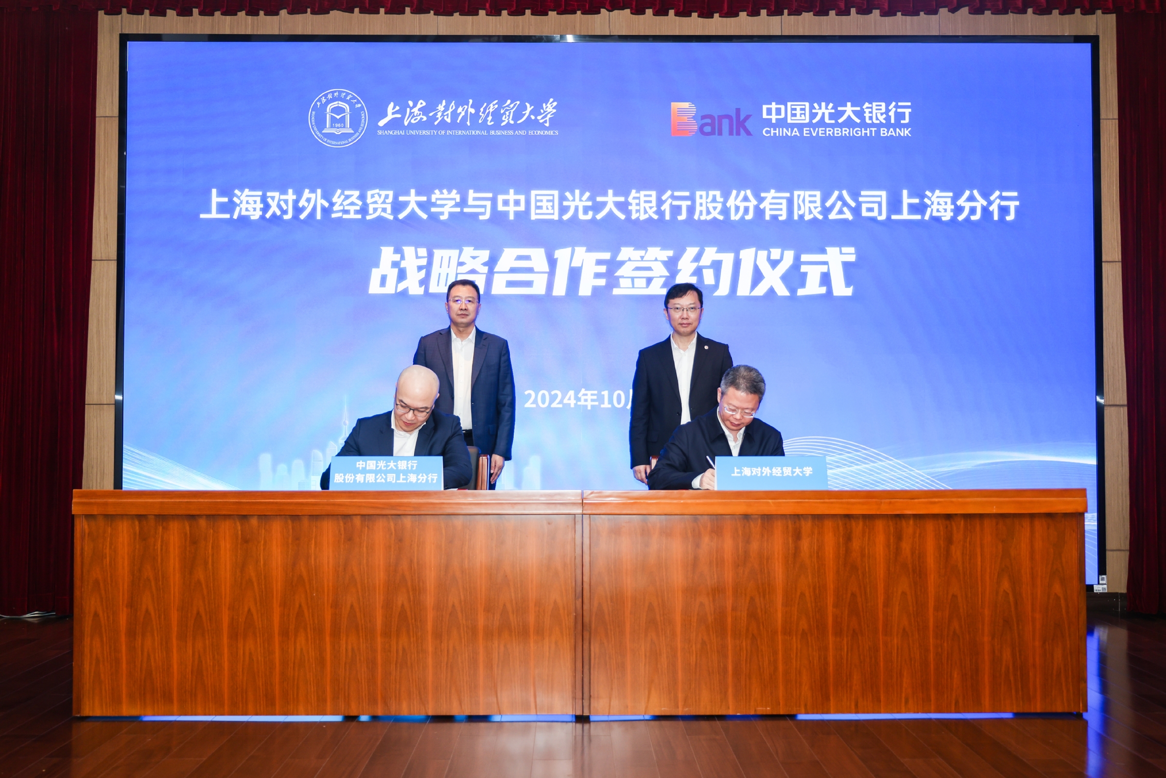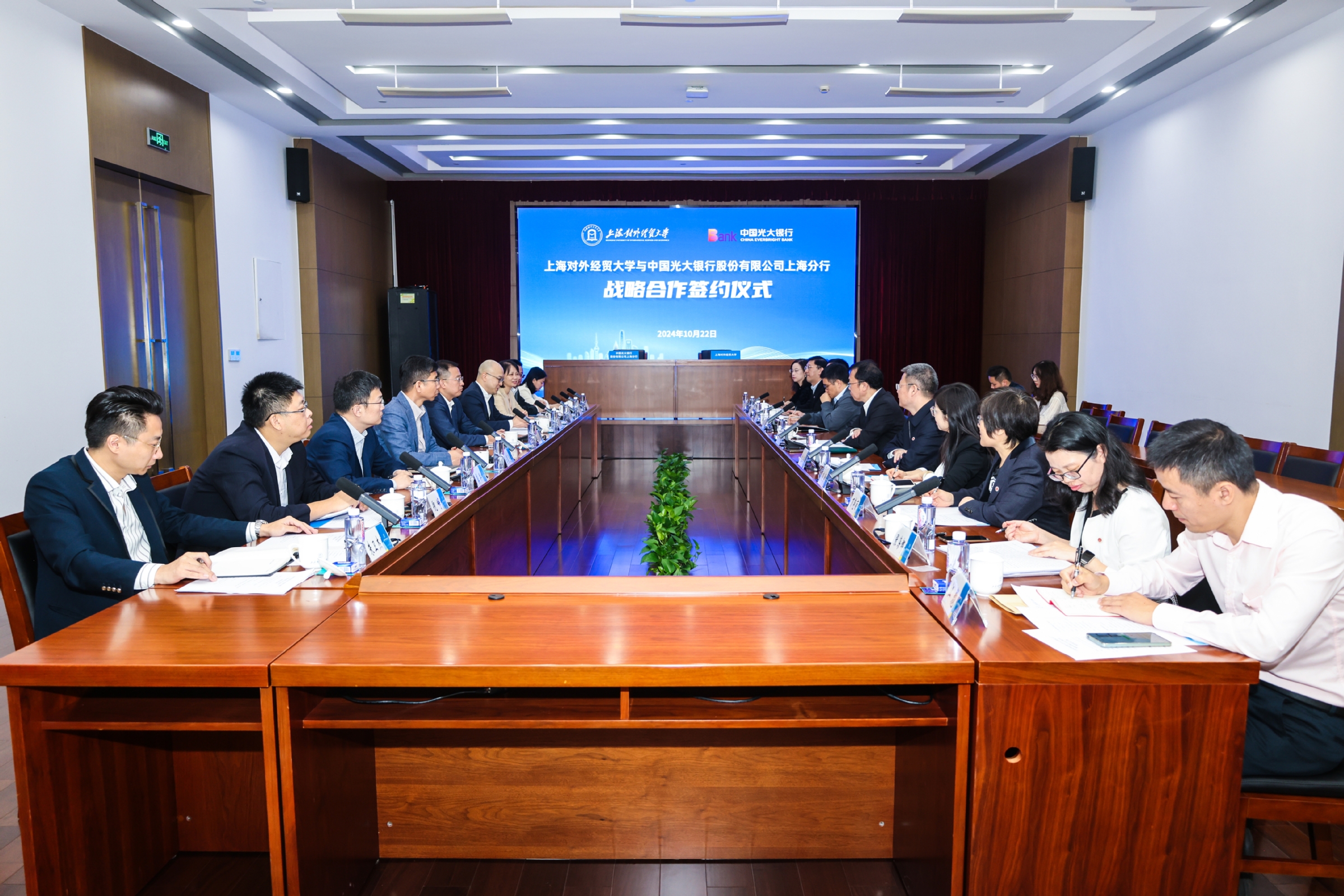 10月22日上午,上海对外经贸大学与中国光大银行股份有限公司上海分行签约仪式在古北校区综合楼510会议室顺利举行。校长汪荣明以及相关单位负责人,中国光大银行股份有限公司上海分行党委书记、行长汤永东,党委委员、副行长杜奕,分行总监马霞光以及相关部门和支行负责人出席仪式。