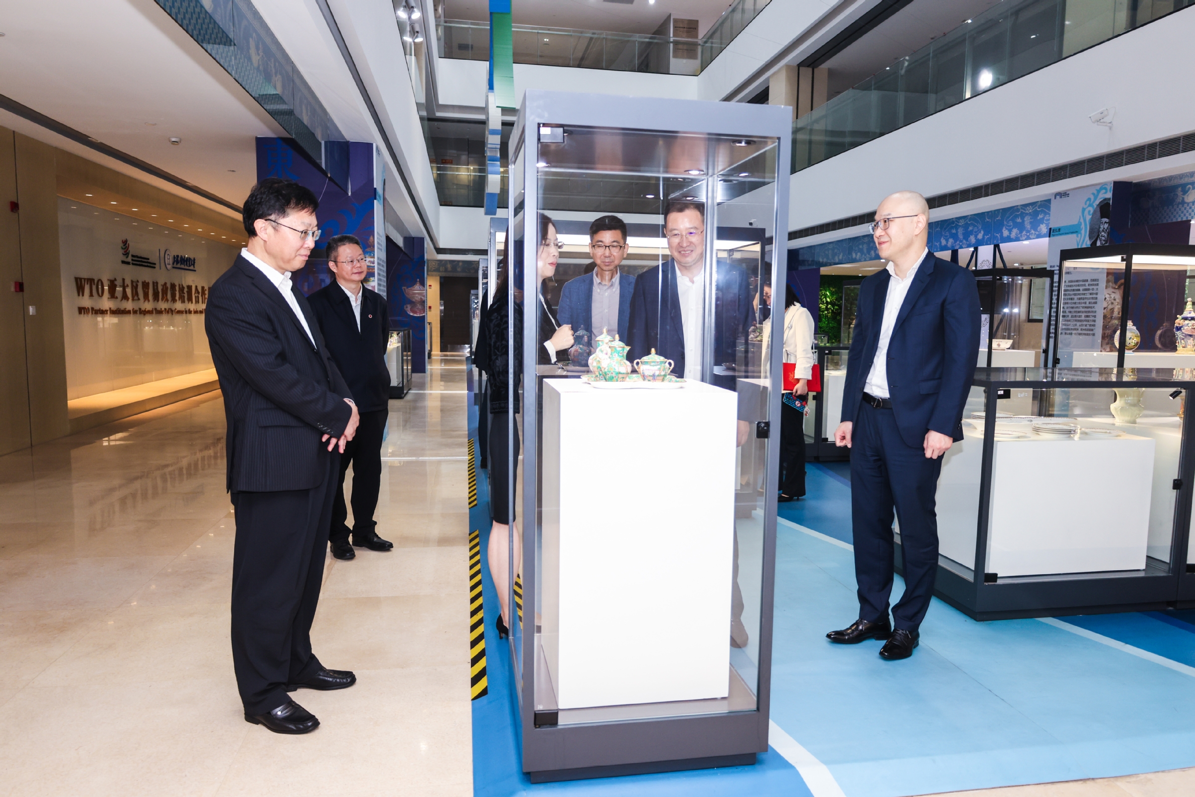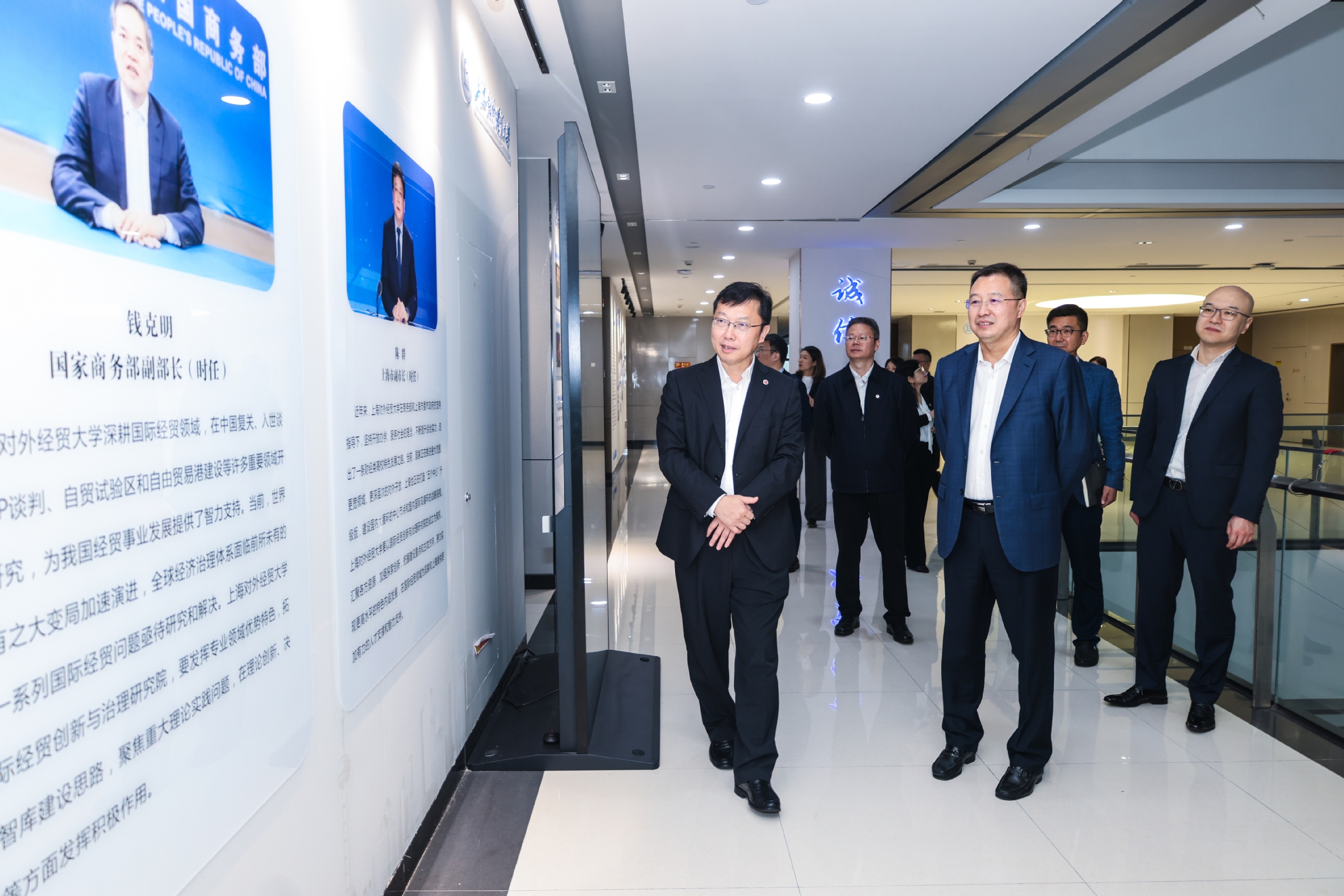 仪式开始前,光大银行上海分行领导一行参观了学校WTO亚太培训中心,国际经贸创新与治理研究院暨决策咨询研究基地,以及上海对外经贸大学博物馆“东风西渐”主题展。