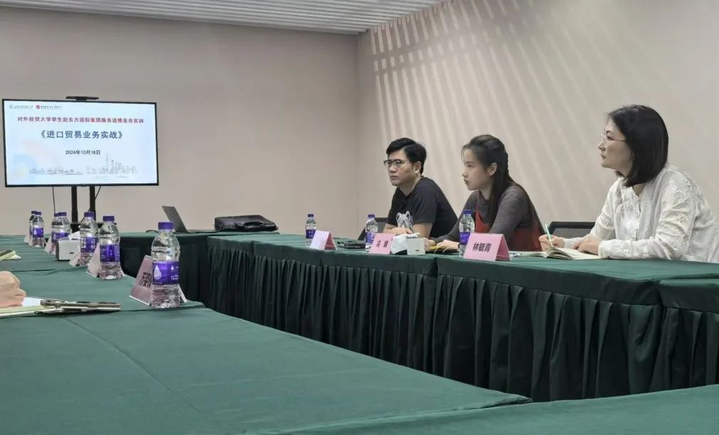 10月18日,国际经贸学院师生一行来到虹桥品汇进行实地参观学习。东方商业公司人事经理冯婧对本次实训项目的内容安排和注意事项进行了说明,集团市场总监俞宙介绍了进口业务的基本情况,并耐心解答了同学们对进口贸易业务的许多疑问。