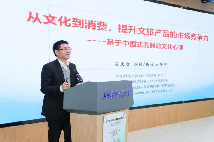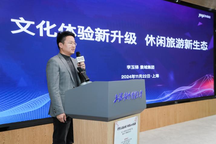 仪式后,华东师范大学文化与旅游系主任吴文智教授作为特约嘉宾,以《从文化到消费:提升文旅产品的市场竞争力》为题作了精彩演讲,为活动下半场拉开了序幕。上海景域集团大区总经理李玉铎从“新文旅时代的特征、目的地需要什么样的新体验以及构建新质生产力下的新生态”三个方面,为与会人员分享了文化旅游升级的创新路径。