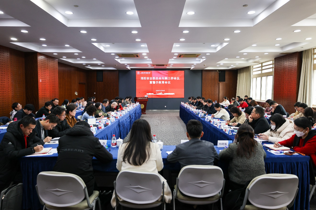 为进一步推进落实《上海市教育委员会安全生产领导小组关于开展高校消防安全隐患排查专项行动的通知》,守牢校园消防安全底线,2024年12月30日下午,学校在松江校区图文信息楼503会议室召开消防安全委员会专题工作会议暨警示教育会议。校长汪荣明,校党委副书记、副校长沈艺出席会议,学校消防安全委员会成员及各单位、部门安全员80余人参加会议。会议由校党委常委、宣传部长、消防安全委员会常务副主任郭茜主持。