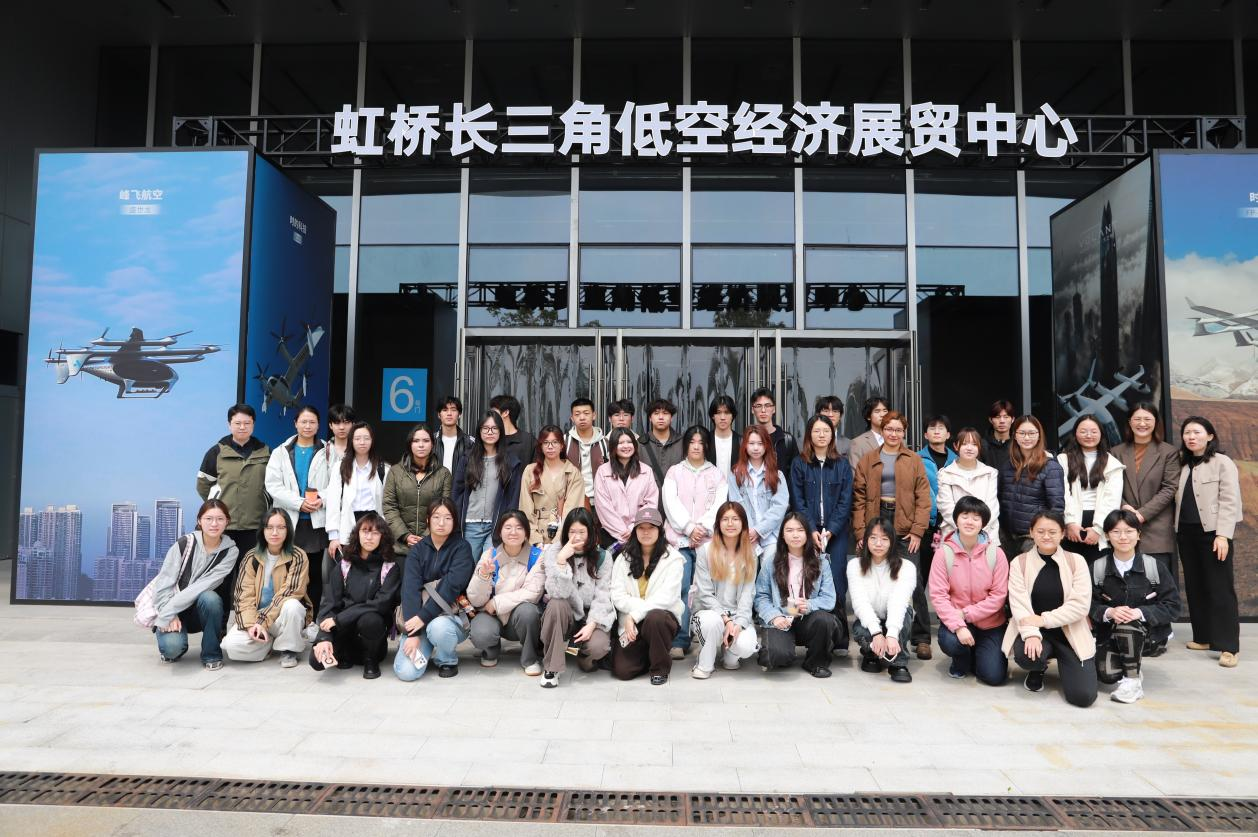 活动下半程,师生来到“虹桥长三角低空经济展贸中心”。在这里,学生化身企业课堂的主角,以国际贸易选品“无人机”为主题登台汇报。现场企业专家给予高度评价,认为学生选题精准,敏锐捕捉到国家政策热点与产业发展风口,同时结合当前低空经济产业硬件发展和专业服务提出改进建议。点评结束后,专家带领师生深入参观低空经济馆,近距离感受前沿航空科技为新贸易业态带来的变革与潜力。