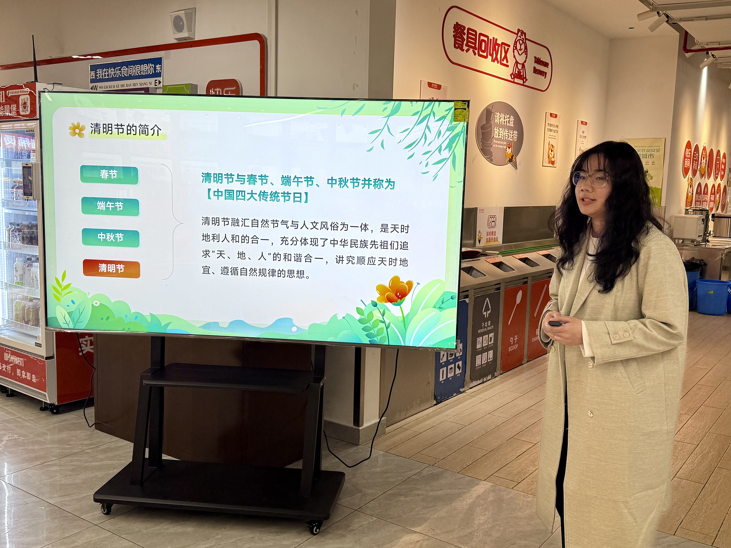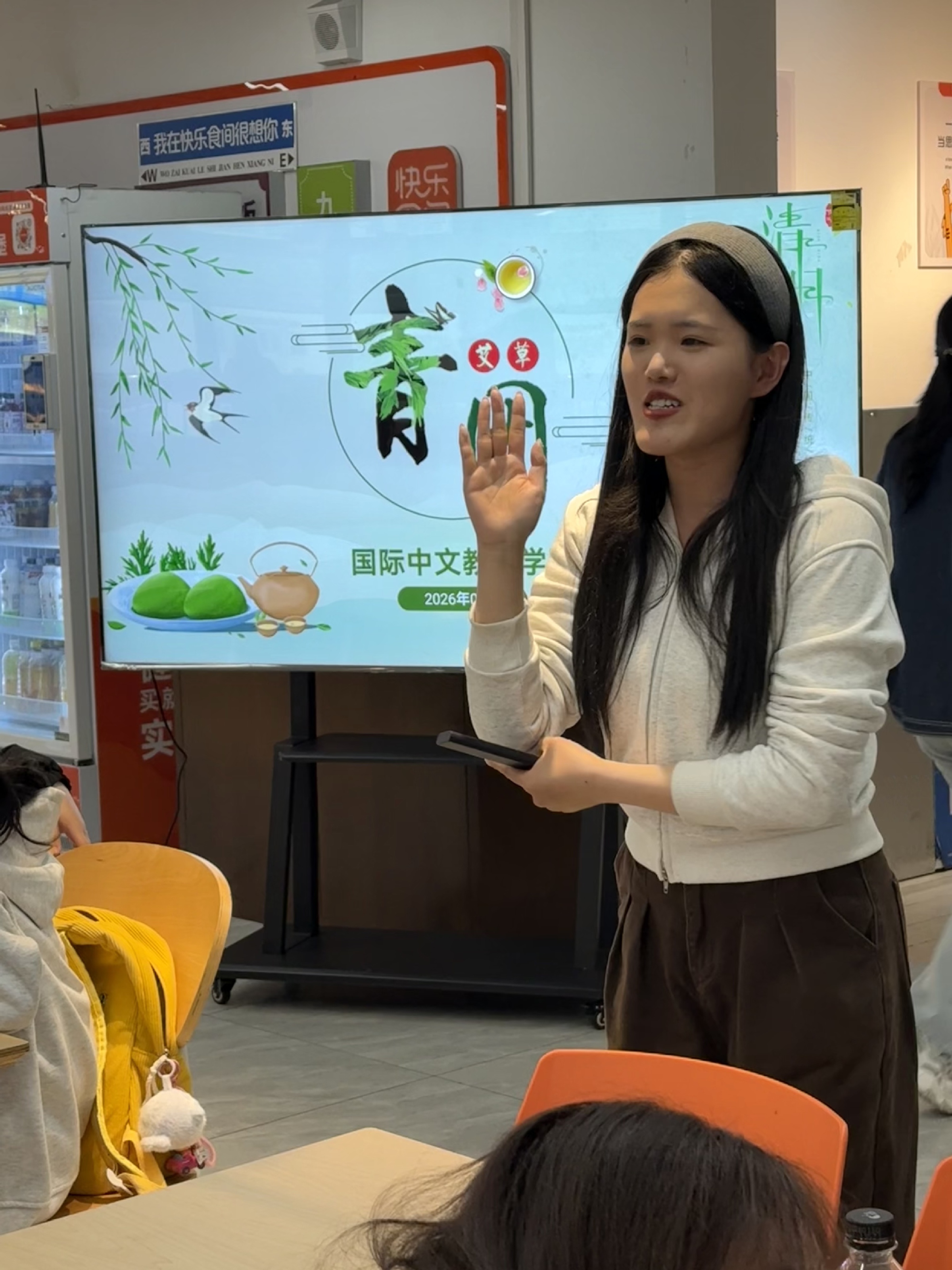 清明将至,为进一步弘扬中华优秀传统文化,搭建中外文化交流互动平台,3月31日下午,国际中文教育学院于松江校区一食堂,顺利开展“清明小课堂”中外文化互动活动。学院党总支副书记虞娅娜、兼职辅导员梁旖和来自俄罗斯、蒙古、韩国、缅甸、越南、泰国、老挝、科摩罗等国家的20余名中外学生共赴一场春日里的传统文化之约。