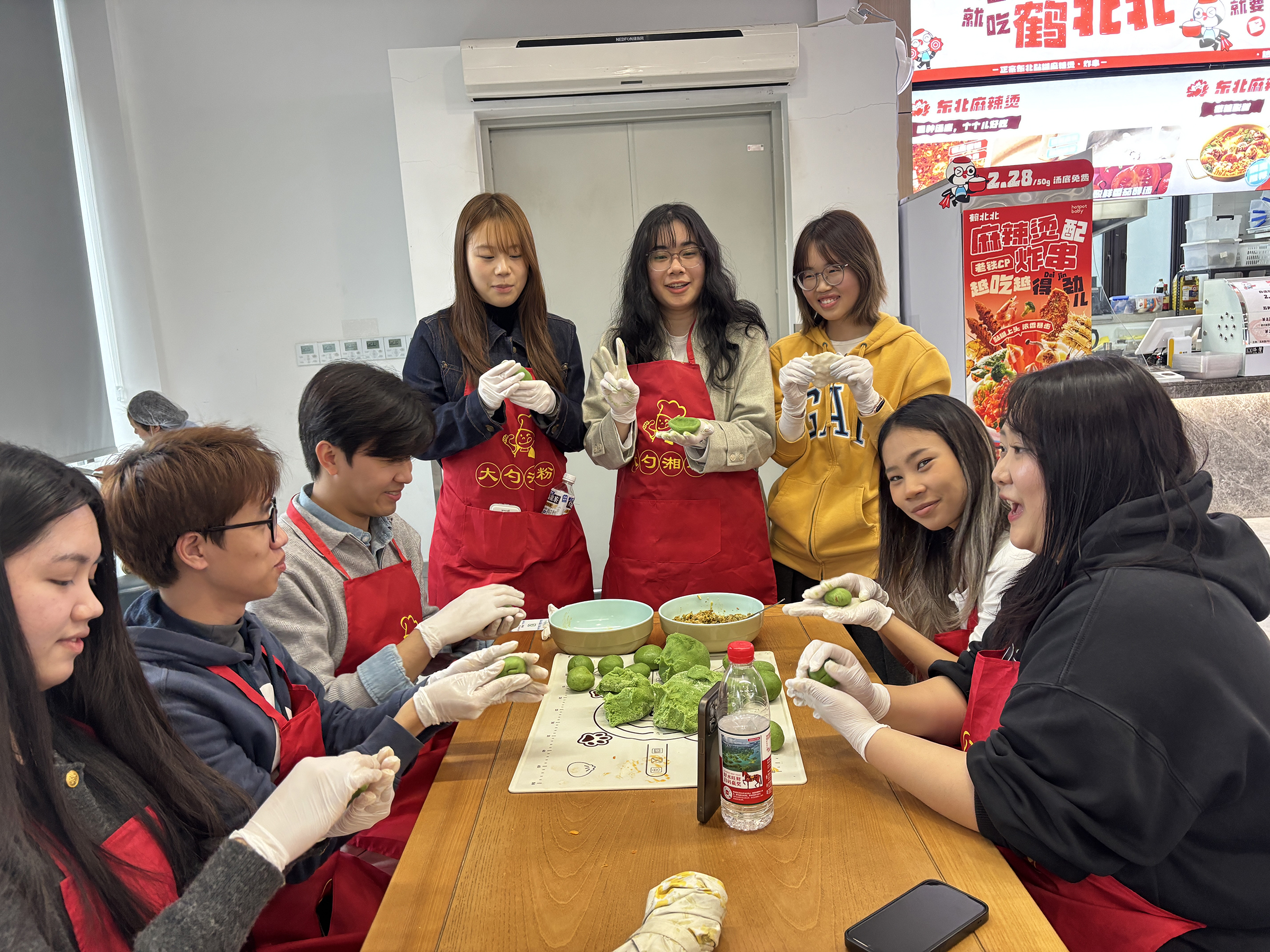 在文化体验环节,食堂师傅从揉制青团皮、包裹馅料,到塑形成形,每一个步骤都拆解细致、操作规范,还特意叮嘱揉面的力度、包馅的技巧等关键要点,简单易学的手法让在场学子个个目不转睛,眼神里满是跃跃欲试的兴奋。紧接着,留学生们纷纷穿上围裙,开启青团制作。中国学生纷纷当起“文化小使者”,一边手把手进行教学,一边还向留学生们补充青团“迎接春天”的文化内涵,大家全程专注投入,现场时不时传来欢快的交流声与笑声。不同国籍的学子因美食结缘,春日的美好与文化交流的温暖在此刻完美交融。