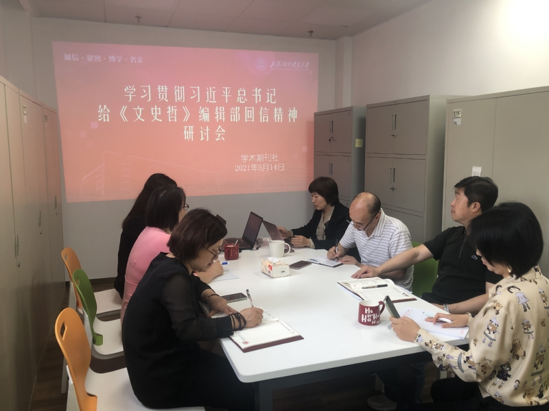 5月14日,上海对外经贸大学学术期刊社召开专题会议,集体学习贯彻了“习近平总书记给《文史哲》编辑部全体编辑人员的回信”(简称“习近平总书记回信”)。学术期刊社领导、编辑、与会同志一致认为,习近平总书记回信体现了对哲学社会科学一贯的高度重视,我们作为哲学社会科学领域的工作者,备受鼓舞。尤其在当前复杂多变的国际形势下,习近平总书记回信给我们办刊指明了努力方向——学术期刊必须满足国家和民族的重大需求,必须高度重视中华文明所蕴含的巨大精神力量。