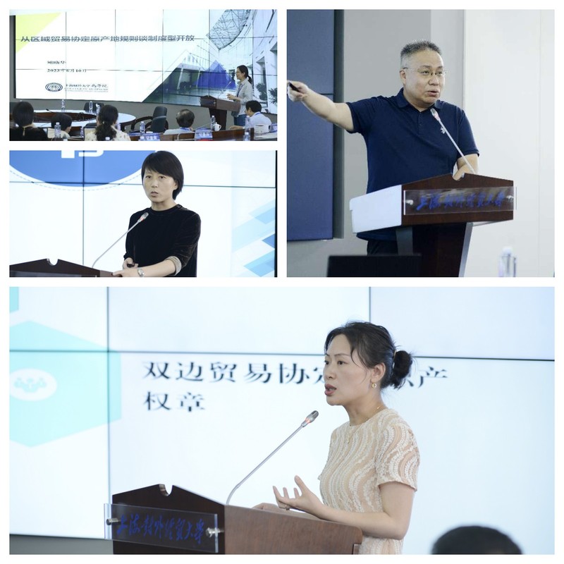 下午是研讨会的专家论坛环节,由上海对外经贸大学研究生院院长刘永辉教授和上海对外经贸大学学术期刊社副社长高运胜教授分别主持。复旦大学自贸区法治研究中心主任龚柏华教授、上海社会科学院国际金融货币研究中心孙立行研究员、上海财经大学商学院鲍晓华教授、上海国际问题研究院世界经济研究所所长王中美研究员、复旦大学自贸区综合研究院院长助理卢华博士、上海大学经济学院何树全教授、上海对外经贸大学国际经贸研究所张磊研究员、上海市商务委员会商务发展研究中心副主任张娟研究员、上海对外经贸大学国际经贸创新与治理研究院副院长夏玮副教授、上海对外经贸大学国际经贸学院黄建忠教授分别发言,他们围绕“中国自贸试验区投资便利化的法治路径”“高水平金融开放与自贸区功能升级”“区域贸易协定原产地规则与制度型开放”“OFDI政策的新近演变与对华影响”“自贸试验区差异化探索与特色化提升”“数据本地存储与跨境传输”“上海自贸区新型国际贸易业态模式与制度瓶颈”“中国投资制度型开放的实践和逻辑演进”“CPTPP知识产权高标准与高水平制度型开放”及“‘双自联动’的若干问题思考”等内容进行了分享。