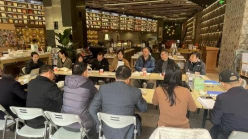 活动伊始,双方齐聚在东方出版中心的中版书房,展开了深入的座谈交流。东方出版中心党委委员、纪委书记、副总经理宋伟峰对学术期刊社党支部的到来表示欢迎,向大家介绍了东方出版中心的组建历史、现行架构、理念方针、资产运营情况、及未来规划,他表示双方的契合点很多,希望通过此次共建可以加强合作,共谋发展。总编辑助理李默耘介绍了出版中心的出版主业布局及特色图书的出版情况。支部书记傅杰简要介绍了东方出版中心第三党支部的党建情况,希望通过共建活动来巩固主题教育成果,实现理论联学、资源共享与业务合作。