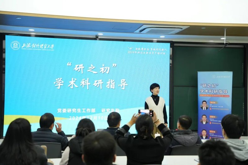 12月10日下午,2024年研究生新生骨干培训班开展“研之初”学术科研指导讲座。本次活动由党委研究生工作部、研究生院、学术期刊社联合举办,学术期刊社社长高运胜教授、《国际商务研究》编辑部主任张建华副研究员、《上海对外经贸大学学报》编辑部主任王火灿副研究员出席活动并做专题辅导。活动由党委研工部副部长、研究生院副院长张晴晴主持。