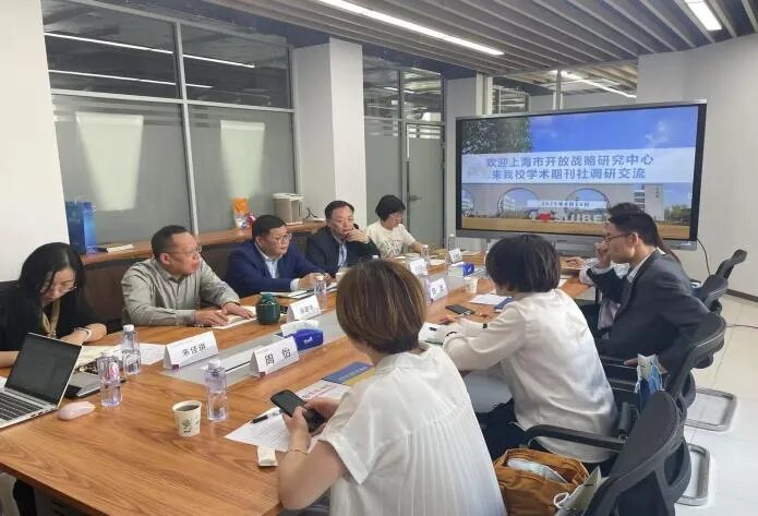 4月16日,上海市开放战略研究中心(上海WTO事务咨询中心)副主任陈波,科研管理与合作交流部主任罗宏、编辑周怡、滕梦月一行来我校学术期刊社调研,双方就如何高质量创办国际经贸领域刊物进行了全方位、深层次的交流探讨。学术期刊社社长高运胜、《国际商务研究》编辑部主任张建华、《上海对外经贸大学学报》编辑部主任王火灿、党支部副书记吴素梅、行政办公室主任朱佳琪及相关工作人员参加调研座谈。座谈会由学术期刊社社长高运胜主持。