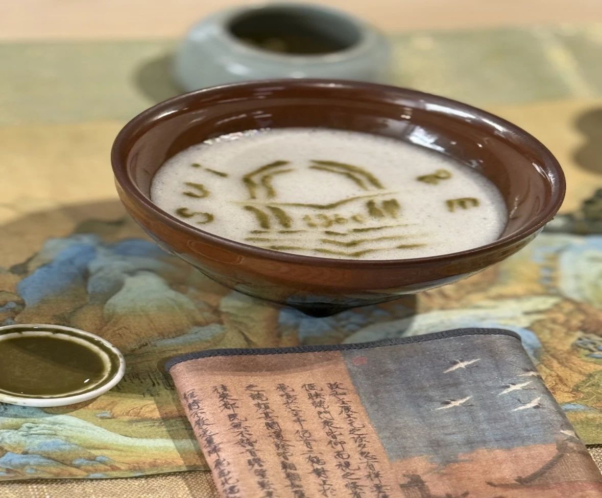 在茶道的另一环节中,留学生要使用茶粉和水制作颜料,并在泡沫上进行绘画。泡沫宛如画纸,等待着大家创意地绘彩。这个环节不仅提升了留学生的动手能力,也让他们体验到了茶道作为中国传统艺术表现形式的独特魅力。