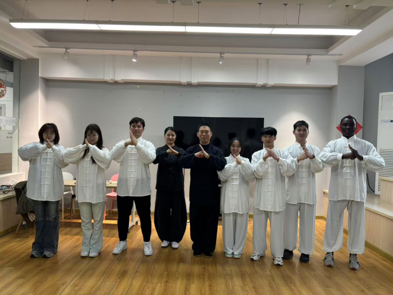 最后,所有留学生与熊老师一起用抱拳礼致敬,并对武当太极和中华传统文化中的问题进行讨论和交流。通过本次太极活动,学生们深切领略了太极拳传承历程中的历史文化魅力,感受到东方哲学的深邃内涵。