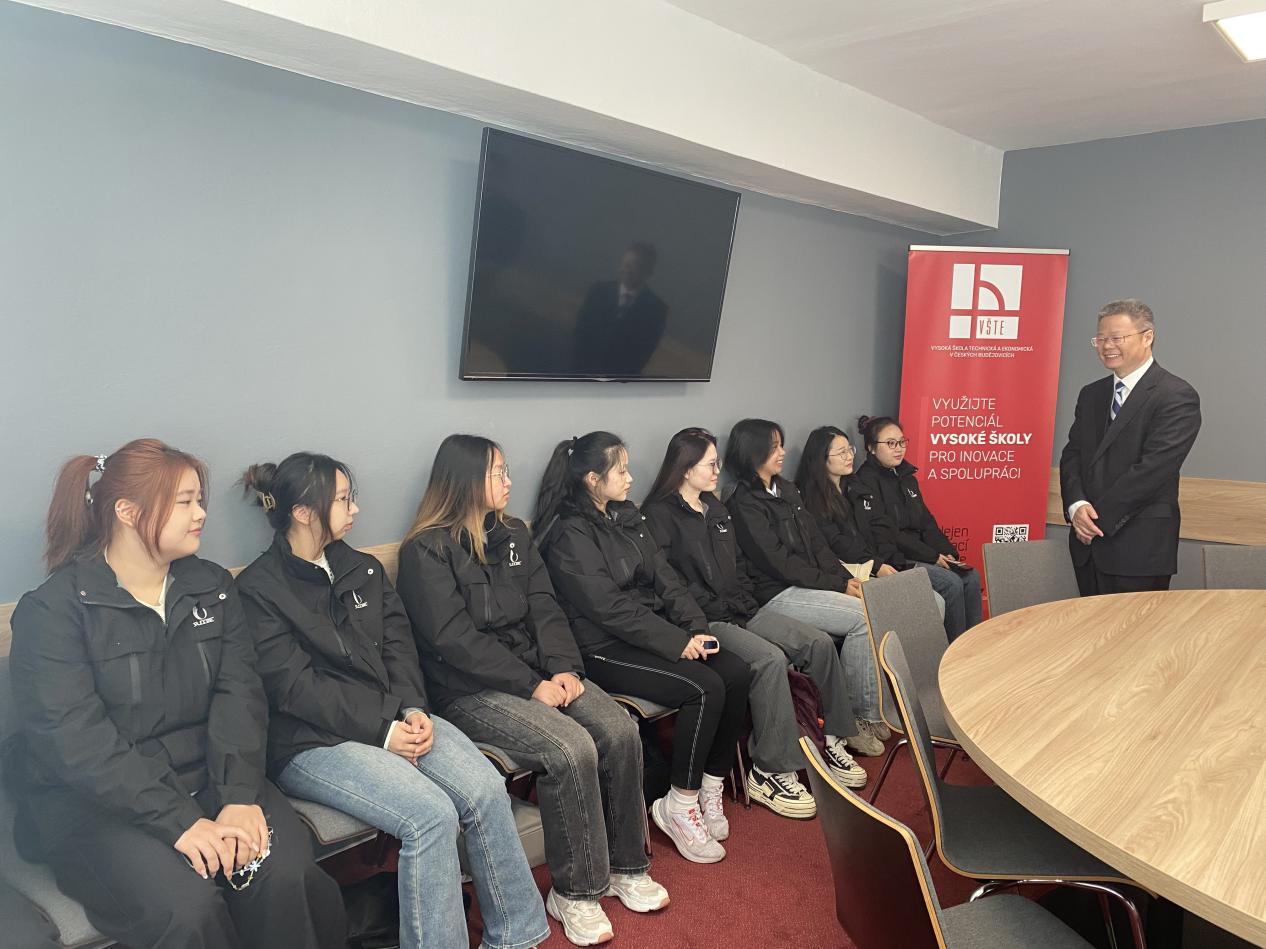 会前,章益国一行亲切看望国际中文教育学院捷克海外实习团队全体师生,他细致关心实习团初到捷克的适应情况,询问团队未来三周的学习、交流、实践计划,寄语全体师生珍惜学校、外方提供的宝贵机会,在海外教学一线锤炼专业本领,做好文化桥梁,展示中国青年的风采。