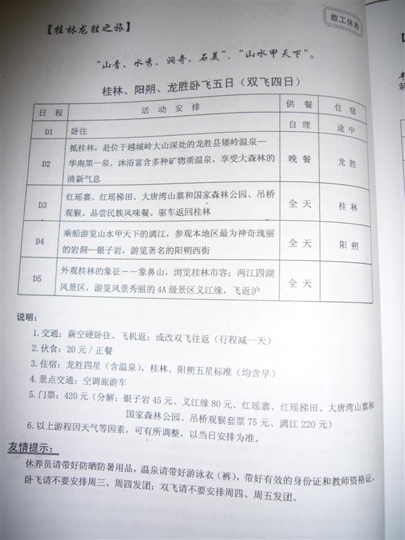 一、应部分教职工的要求,现增加推出“桂林”线路(2200元)7月13日出发,具体行程、费用等见附件,接受报名。
