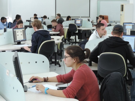 国际贸易实验室位于图文信息大楼的四楼,由教师工作室和学生实训机房构成:教师工作室为国贸仿真工作室和网络贸易实战工作室;学生实训场所则依不同实验课程的特点,使用公共基础实验室、国际商务实验中心机房、视频会议实验室等。
