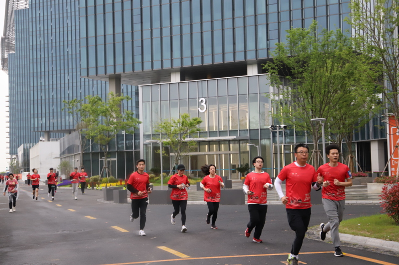 2021“复兴之路·薪火驿传”百公里接力赛松江赛段活动设主会场和三个分会场。科创松江·G60科创云廊分会场5KM健康跑,从莘松公路、千帆路由东向西跑至内部道路,由内部道路围绕拉斐尔云廊形成闭环。一圈约为1.7公里,每位运动员跑3圈,工作人员在终点处为完成圈数的运动员,通过张贴“科创松江”、“人文松江”、“生态松江”宣传贴纸进行打卡,集齐3张贴纸的运动员即完成该项赛事。本次健康跑活动我校共有45名师生通过环跑拉斐尔云廊,传递红色力量,领跑G60,在科创传承上接力奔跑、突破自我,用团队接力这一接续奋斗的体育运动形式,传承红色基因、发扬红色传统,在努力奔跑中,更好感悟信仰之力、理想之光、使命之艰、担当之要,更好汲取开拓前进的勇气、智慧和力量,将坚韧不拔的跑步精神融化为未来学习和工作上的动力,