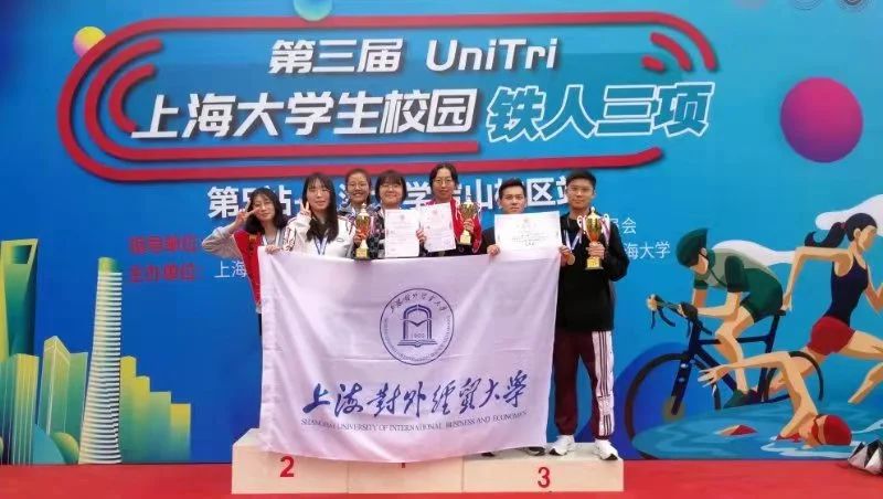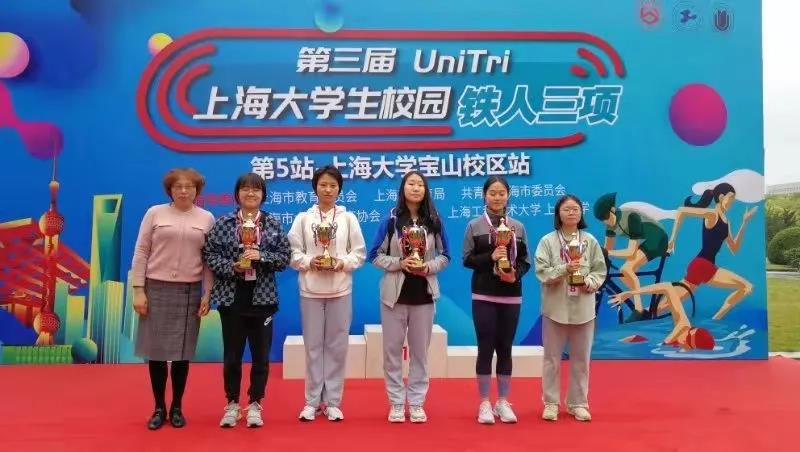 4月24日上午,第三届UniTRI上海市大学生校园铁人三项第5站比赛在上海大学宝山校区如期开赛,本次比赛由上海市教育委员会、上海市体育局、共青团上海市委员会指导,上海市大学生体育协会主办,上海工程技术大学、上海大学承办,共有来自全市15所高校的156名男女铁人参与了本次赛事的角逐。校园铁人三项比赛总距离为7.2公里,共包括0.2公里游泳、5公里自行车骑行以及2公里的跑步,此项运动对参赛选手的体能要求极高,我校体育健儿经过前期的努力训练,克服比赛时的阴雨不利参赛条件,奋勇拼搏,最终斩获女子组个人第三(王语蔚)和第四名(陈艺)以及男女混合团体三等奖的好成绩,充分展现了我校学生勇于挑战自我,不畏艰难的拼搏精神。