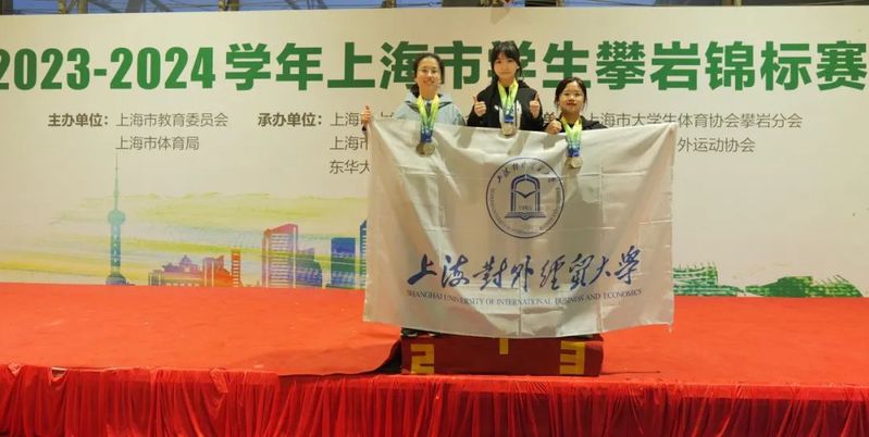 上海对外经贸大学攀岩队选拔派出戴钰婷、梁宁、马婕、汤逸凡四名同学参加本次比赛。