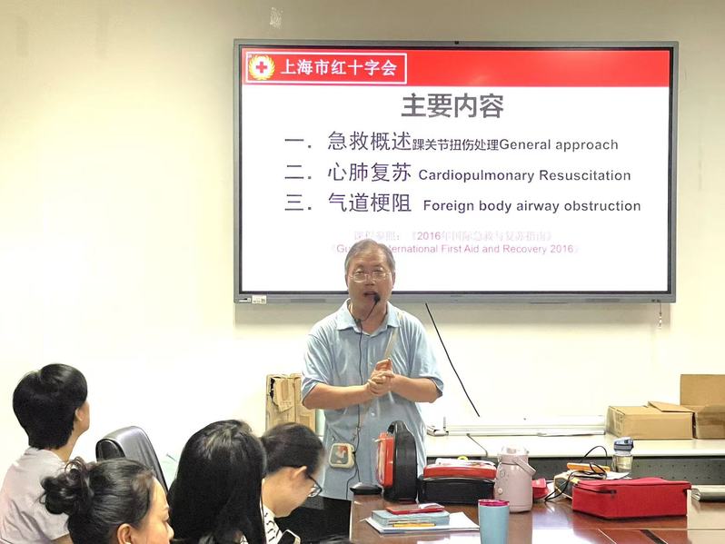 为进一步提升教师的应急救护能力,保障校园教学安全,尤其是体育课堂上的突发状况应对,9月7日下午,体育健康学院组织全体教师参加了心肺复苏急救培训。本次培训由校医务室俞永斌医生主讲,并参照上海市红十字会课程体系,结合《2016年国际急救与复苏指南》展开,内容科学专业、实践性强。