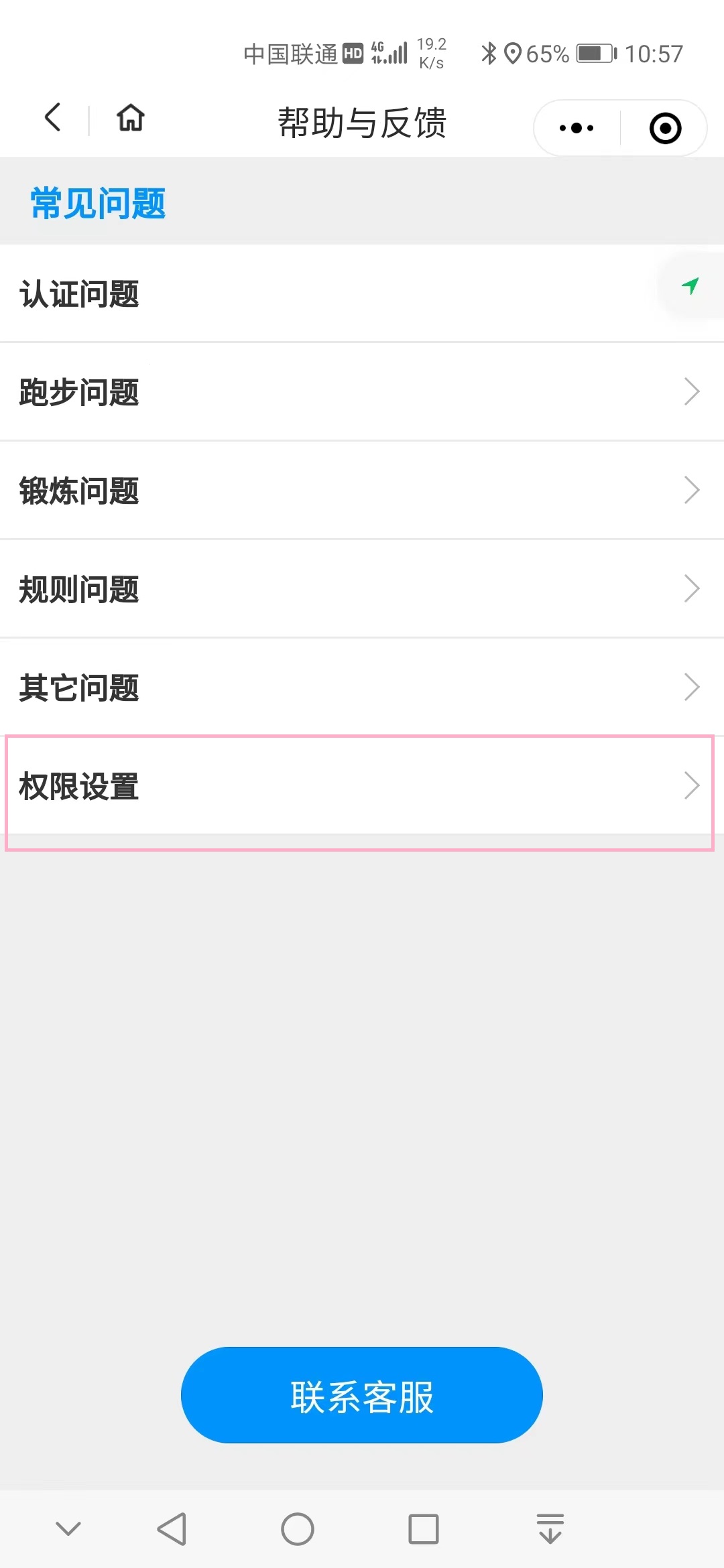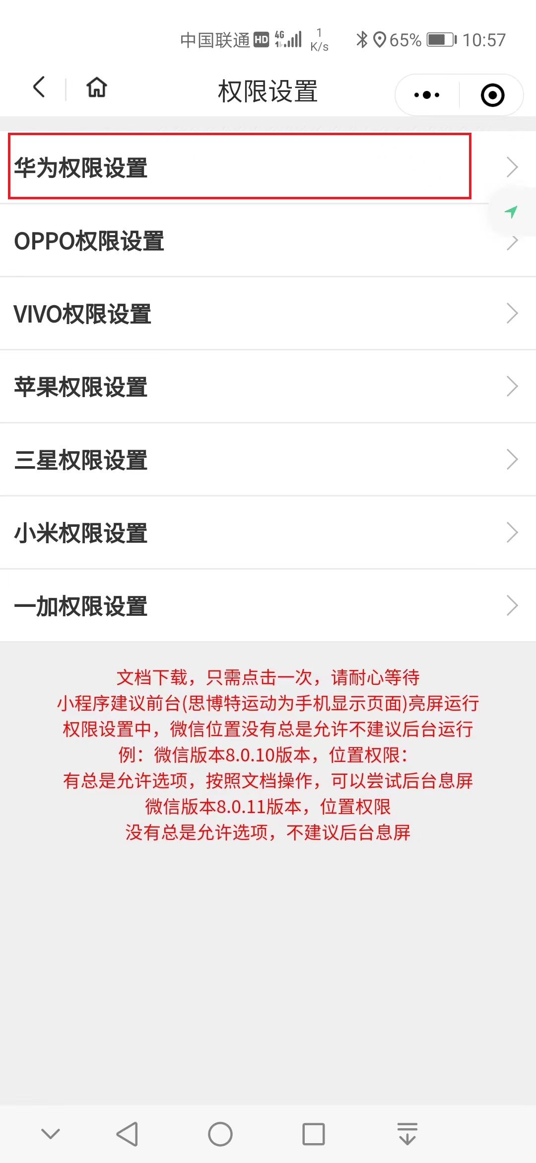 6. 请所有同学们完成SportRun小程序中:我的→帮助与反馈→权限设置→完成自己机型的权限设置(看到最后一页)
