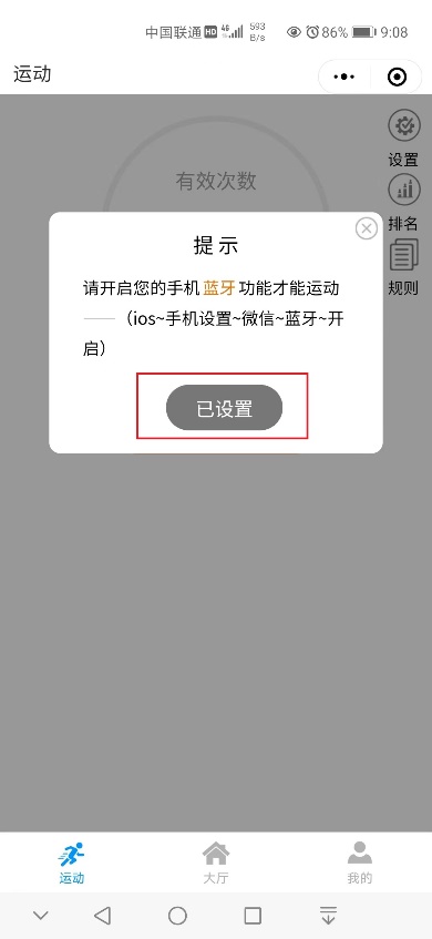 (3)长按跑步,打开GPS和蓝牙功能,未开启时会弹出相应提示,开启设