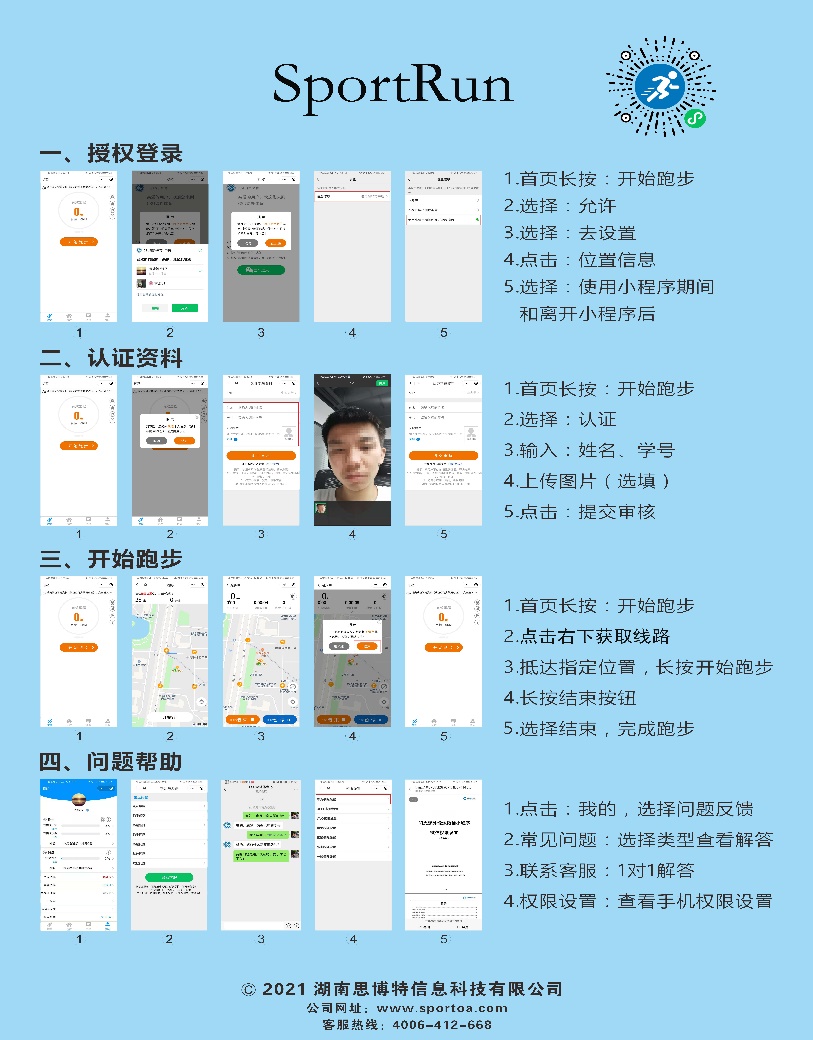1. 在首次使用“SportRun”微信小程序时,请按附件1说明,正规途径下载、注册、使用。