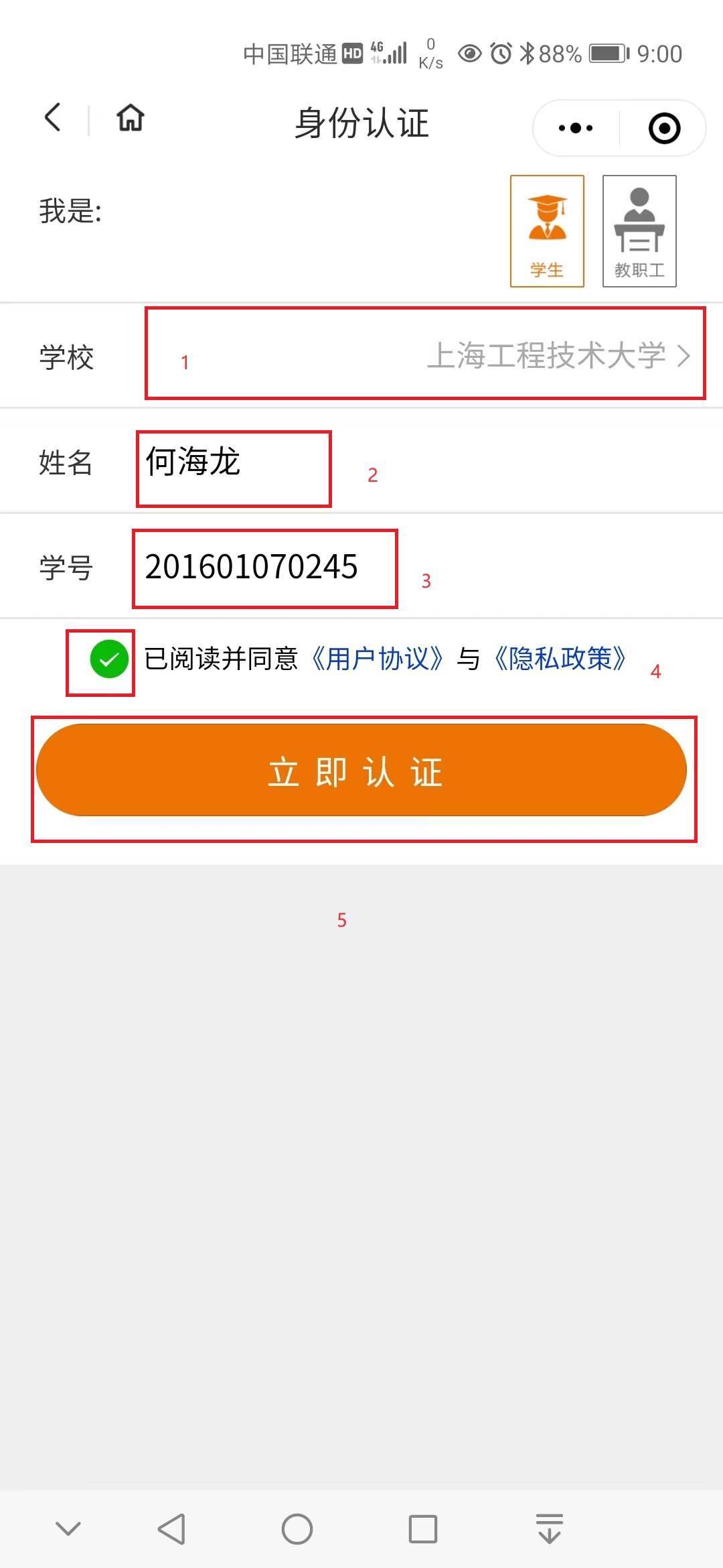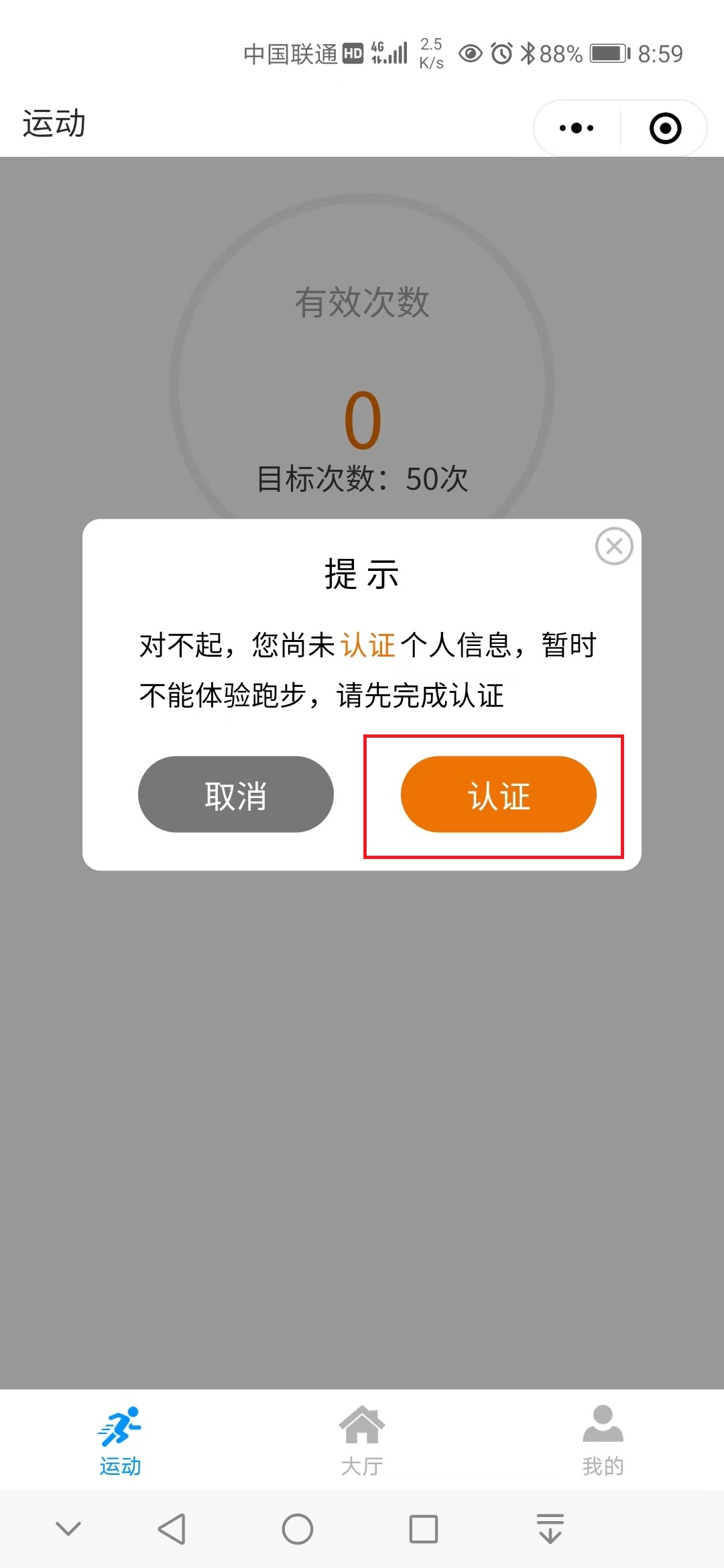 (2)在运动界面,长按跑步,弹出提示框,选择认证,进入身份认证页面,输入对应内容,勾选已阅读并同意《用户协议》与《隐私政策》,点击立即认证;