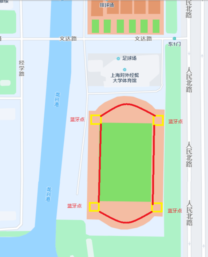 ②打卡:按照任意顺序经过全部4次打卡点(蓝牙点),如下图所示。