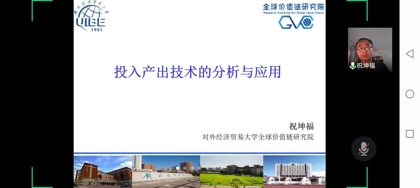 5月13日晚,祝坤福博士关于《投入产出技术与全球价值链核算》系列课程的首场讲座在腾讯会议平台正式举办。本场讲座由统计与信息学院院长、教授刘永辉主持,吸引了学校相关专业领域的110多名师生参加。