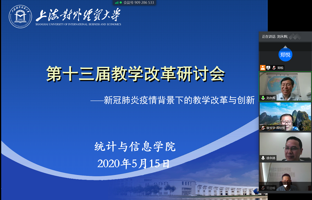 5月15日下午,统计与信息学院召开了第十三届教学改革研讨会。本次教学改革研讨会的主题是:新冠肺炎疫情背景下的教学改革与创新。副校长徐永林出席会议并致辞。会议由统计信息学院院长刘永辉主持,学院全体教师通过腾讯会议平台参加了会议。