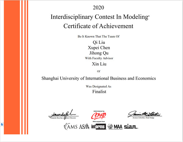 美国大学生数学建模竞赛(MCM/ICM)由美国数学及其应用联合会主办,是全球唯一的国际性数学建模竞赛,也是世界范围内最具影响力的数学建模竞赛,为现今各类数学建模竞赛之鼻祖。赛题内容涉及经济、管理、环境、资源、生态、医学、安全、未来科技等众多领域。自2015年起,我校学生已连续第六次参加MCM/ICM赛事,参赛人数逐年增加,校内已形成浓厚的数学建模文化氛围,竞赛成绩不断提高,已累计获得国际特等奖提名奖3项,国际一等奖15项,国际二等奖85项。