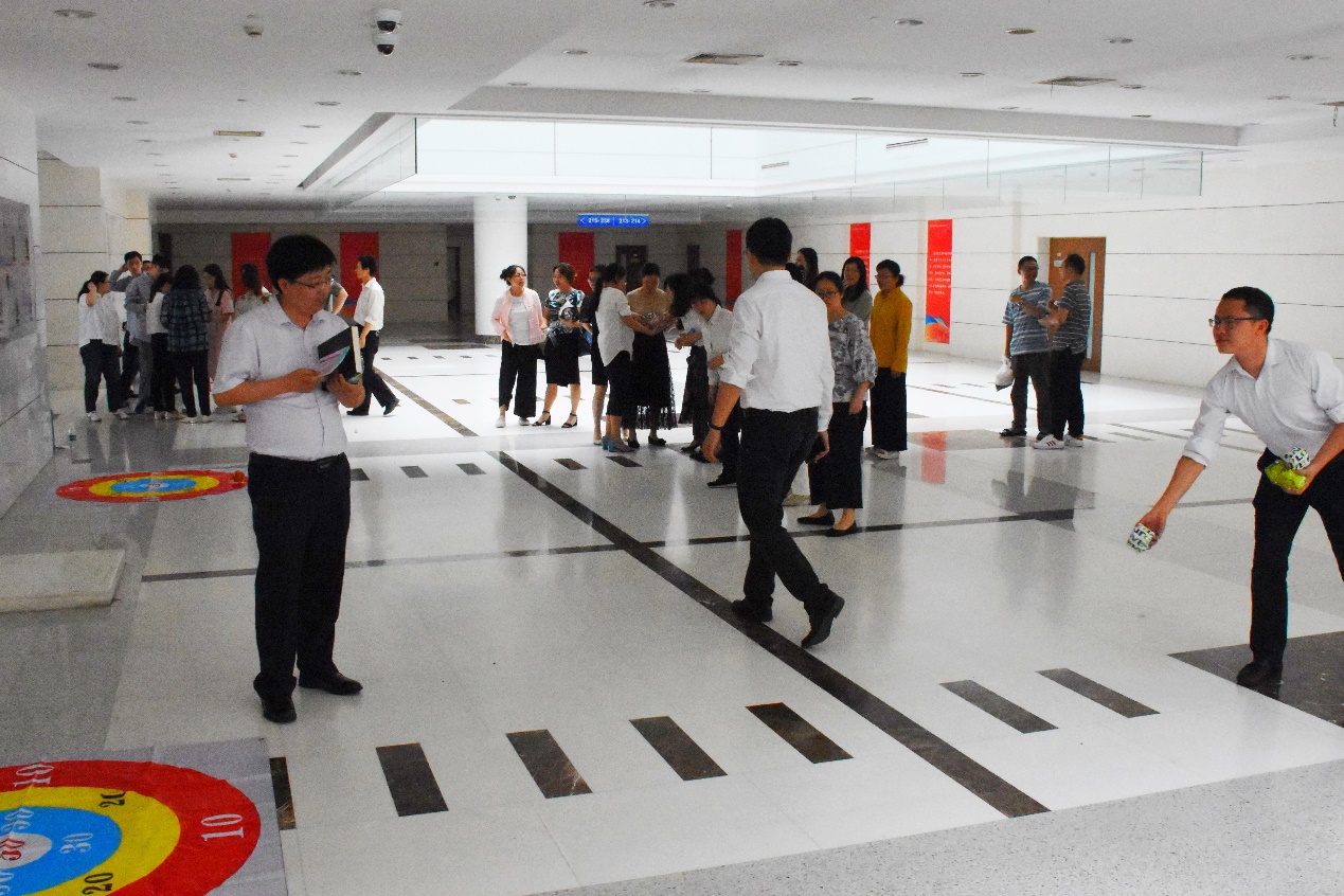 7月8日下午,统计与信息学院工会在学校松江校区图文信息楼二楼大厅开展了以“强身健体,齐心协力,共同抗疫”为主题的教职工趣味运动会。活动面向学院全体教职工,旨在帮助学院教职工一起活动筋骨,锻炼身心,提升学院教职工的团队合作精神,增强团队向心力和凝聚力。
