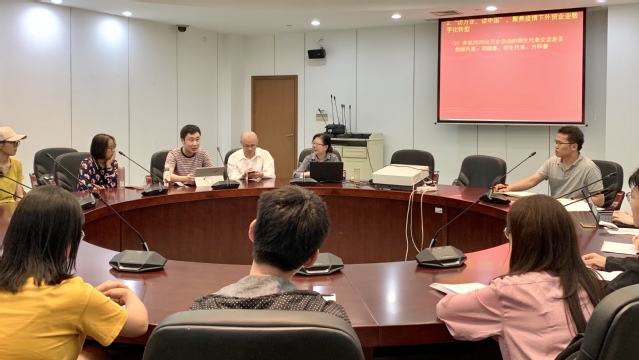 暑假期间,两个支部绝大部分师生都参加了题为“新冠肺炎疫情下外贸企业的数字化转型”的2020年“访万企,读中国”社会调查项目(简称“万企调查”)。这一环节,“万企调查”项目负责人、经济统计系主任吴开尧老师简要介绍了项目开展情况以及取得的成果,强调了项目作为融合了科研训练、人才培养以及社会实践三合一平台,对于涵养师生家国情怀的重要意义。指导教师代表司继春和调查员代表方梓豪同学分享了在调查中对疫情背景下的国情、社情、企情的感悟和认知,真正体会到了中国共产党的领导和中国特色社会主义制度的优势,表达了要弘扬抗“疫”精神,继续坚持求真学问,练真本领,知行合一,做实干家。
