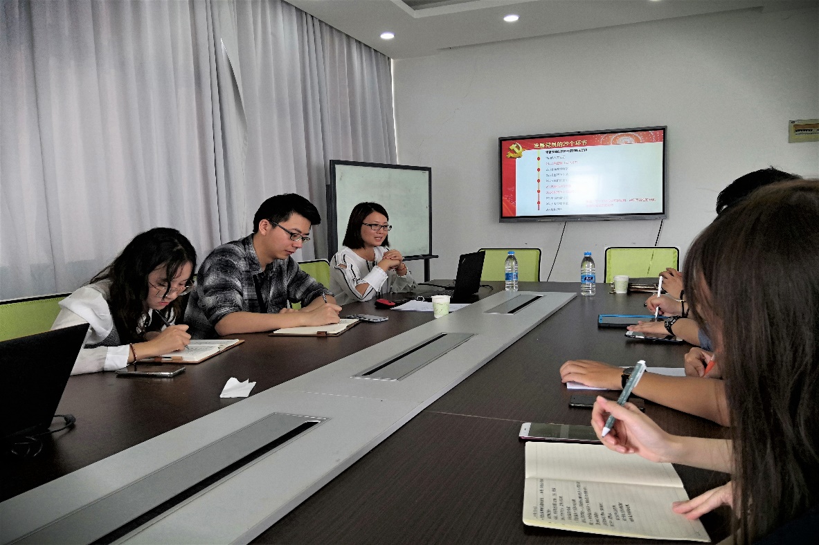 徐峰代表学院党委对两位老师的到来表示衷心感谢。他表示,学院将变压力为动力,在进一步抓好党员发展工作质量的基础上,不断凸显学院党建工作特色。他希望,各位支部书记和党员骨干要提高认识,坚守岗位,以甘做一颗闪闪发亮的螺丝钉,团结和引导更多的优秀青年大学生加入到党组组来。