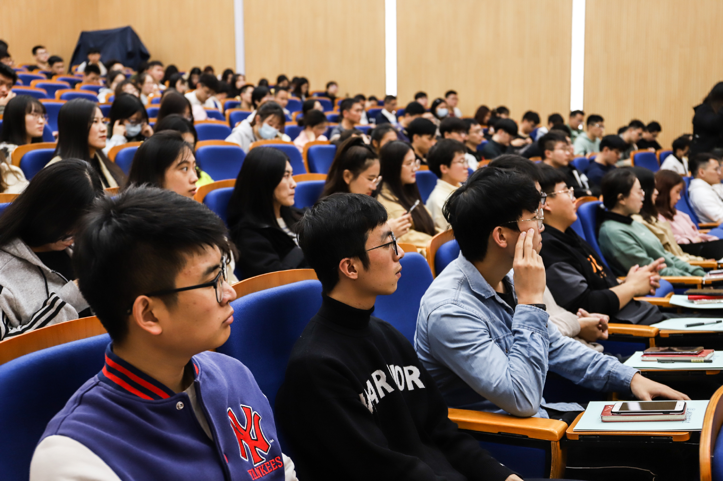 揭牌仪式结束后,周勇教授作了“统信大学堂”首场报告《统计交叉学科的挑战与机遇》。他结合典型案例,生动形象地阐明统计学在促进多学科融合上发挥着越来越重要的作用,同时提出交叉科学融合与发展必然给统计学带来重要的机遇及挑战。周勇教授通过介绍统计学与大数据行业等时代前沿信息,为同学们展示了不一样的领域知识,在扩展同学们知识面的同时,增强了同学们努力学好统计学的信心。
