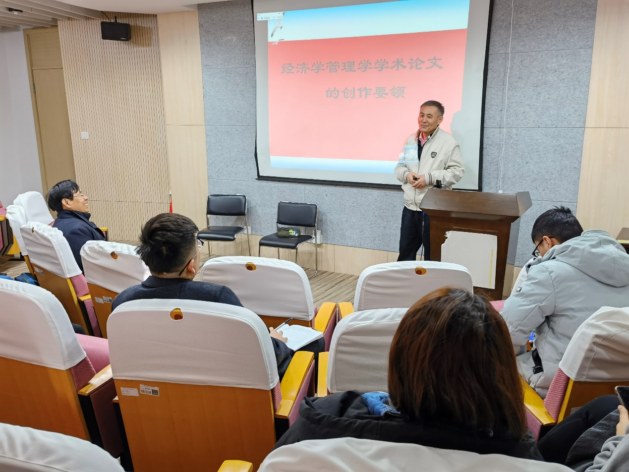 为了帮助师生开拓视野、提升学术论文创作水平,营造浓厚的学术研究氛围,12月17日,统计与信息学院邀请《数量经济技术经济研究》杂志常务副主编、中国数量经济学会常务副会长兼秘书长李金华教授来校作了题为“经济管理学学术论文的创作要领”的专题报告。统计与信息学院、国际经贸学院部分教师和研究生参加了此次活动。活动由统计与信息学院院长刘永辉主持。