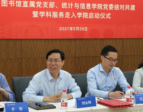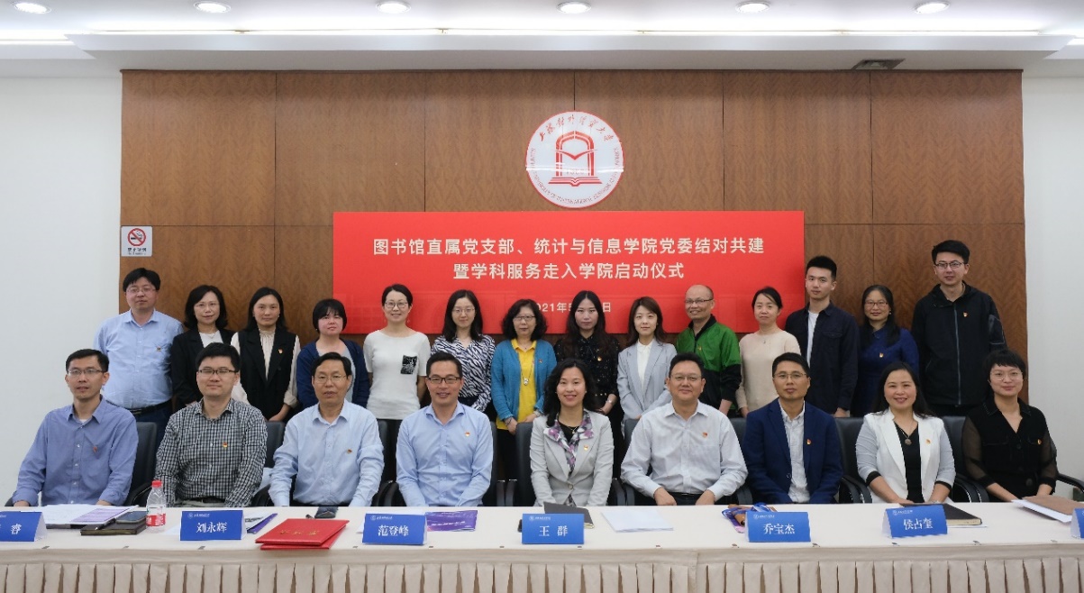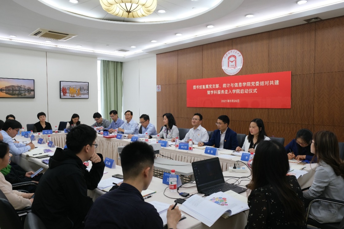 出席仪式的有统计与信息学院、图书馆领导班子成员,学院教工党支部书记、系主任和教师代表,图书馆信息服务部学科馆员等近三十人。