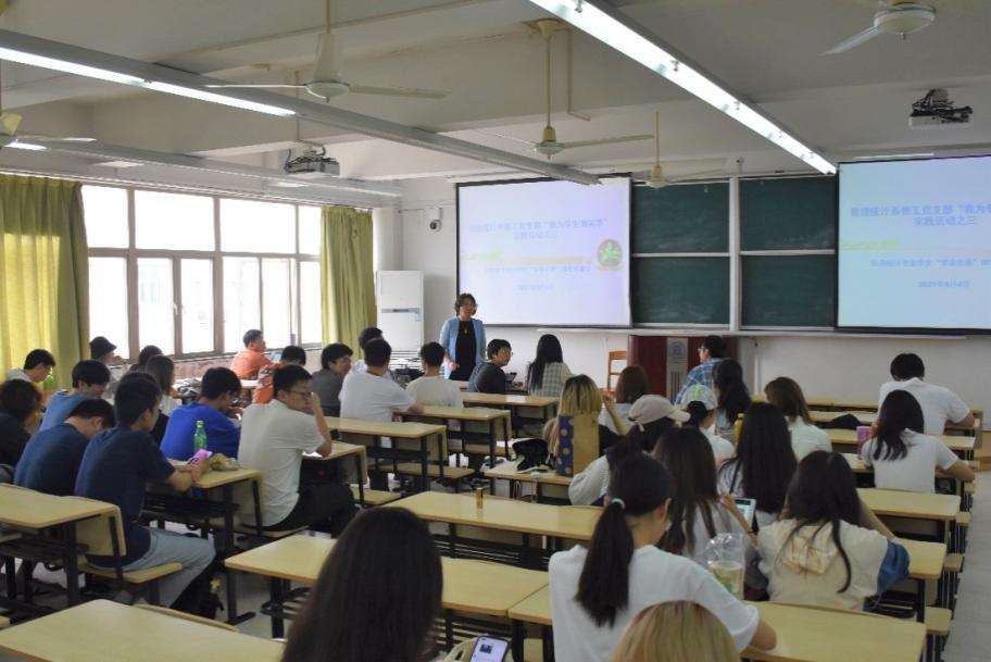 6月4日下午,数理统计系教工党支部在学思楼SB203召开应用统计学专业“学涯发展”师生交流会。学院副院长赵倩,就业指导教师肖包兴邦, 应用统计学专业班主任刘关福、董平等出席,活动由支部书记赵霞主持。